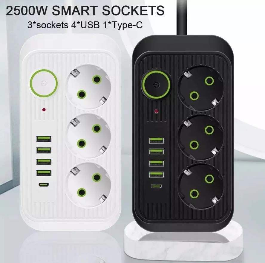 欧式欧标黑色白色带小夜灯一转二一转三一转四USB-C充电转换插座