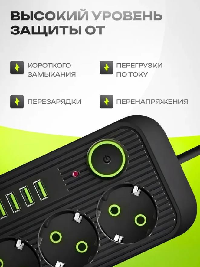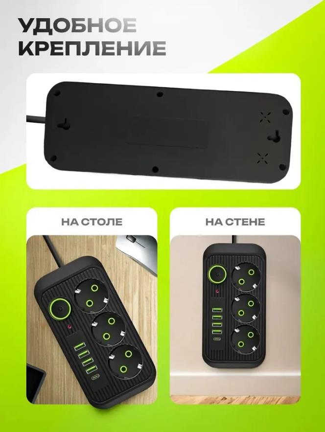 网络过滤器家用延长线带Type-C和USB长度3米欧规欧式插座外贸排插