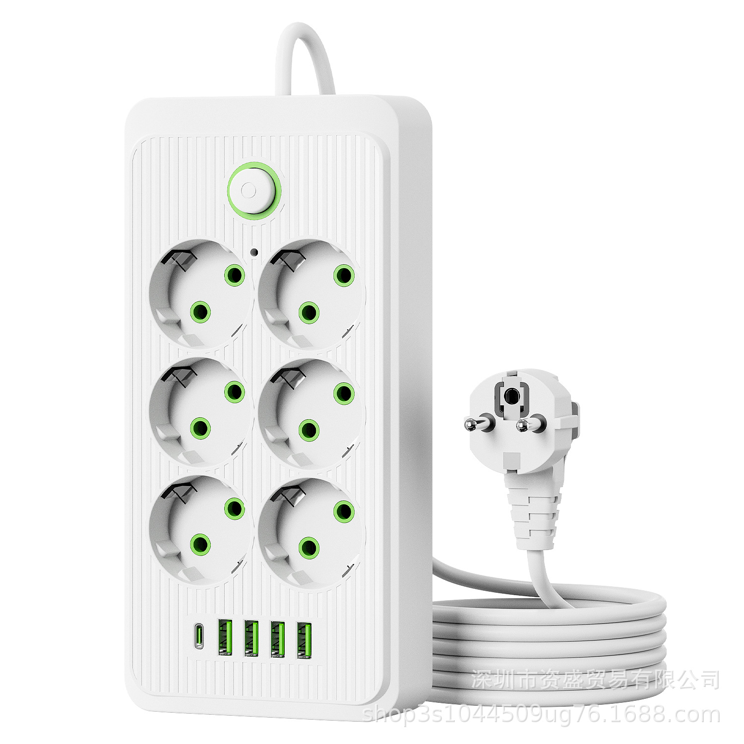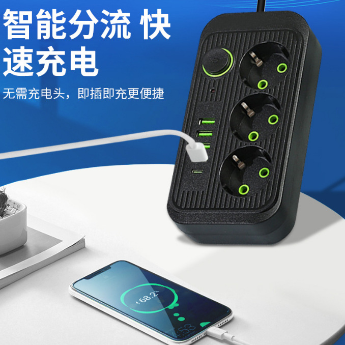 ヨーロッパ標準 USB 電源タップ家庭用スマートソケット配線ボード多孔質ヨーロッパ標準電源タップワイヤー付き外国貿易