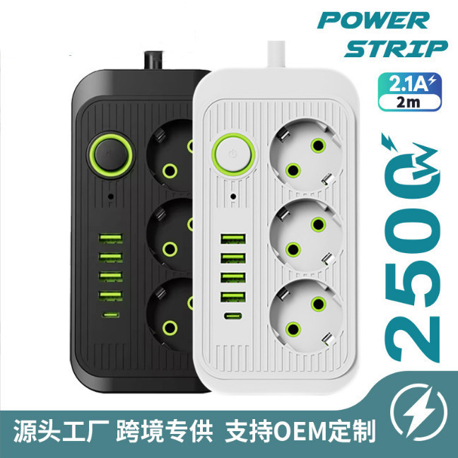 欧洲标准USB排插家用智能插座接线板多孔欧规插排带线插板外贸