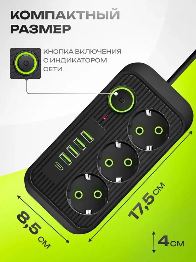 一转三四五多位TYPE-C黑色带小夜灯跨境多用孔USB充电插座转换器