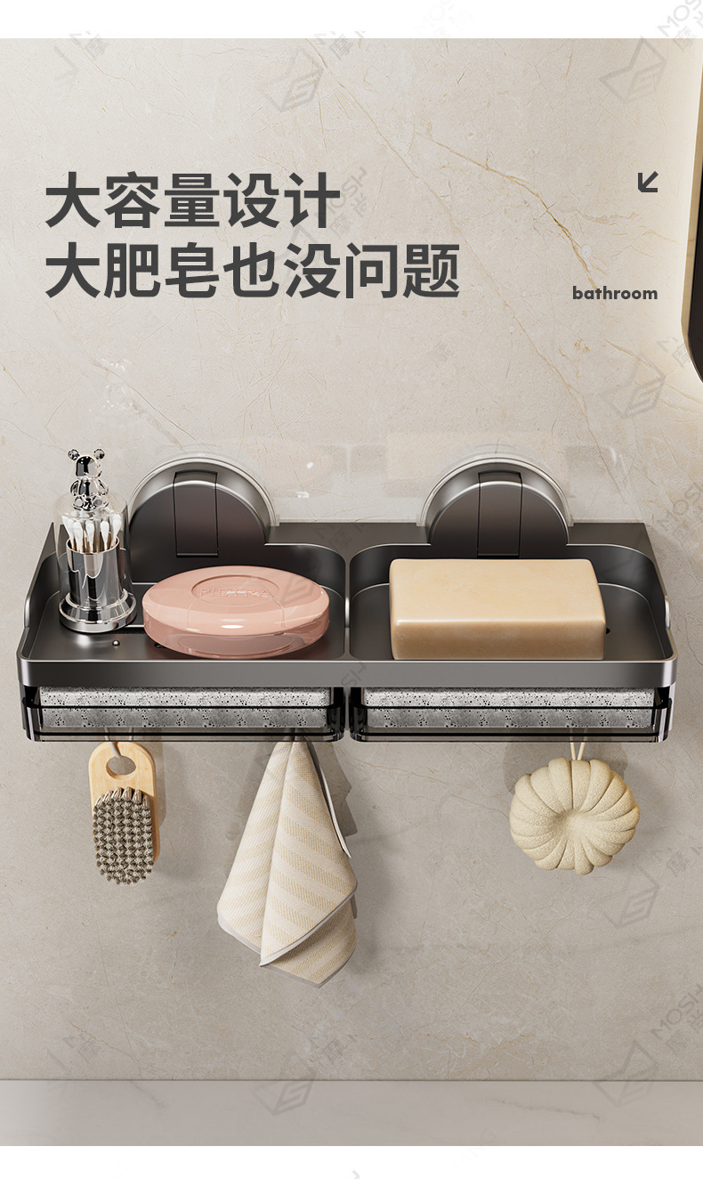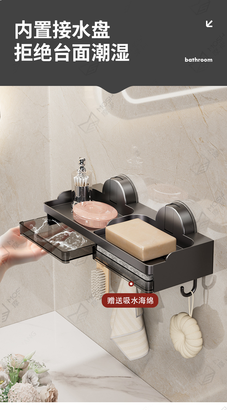 吸盤石けん箱壁掛け式穴なし家庭用高級トイレの壁に水を入れて棚を置く二重石けん箱