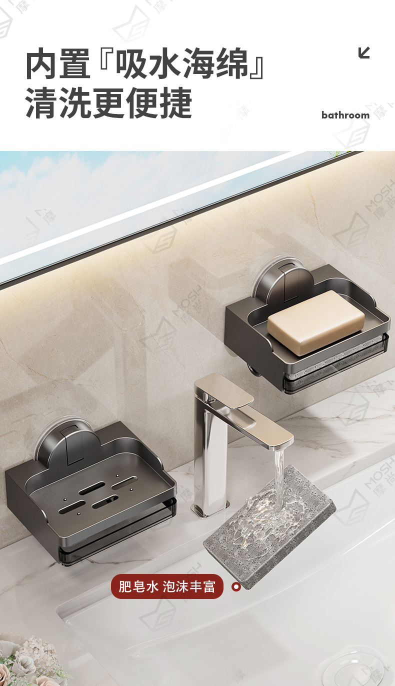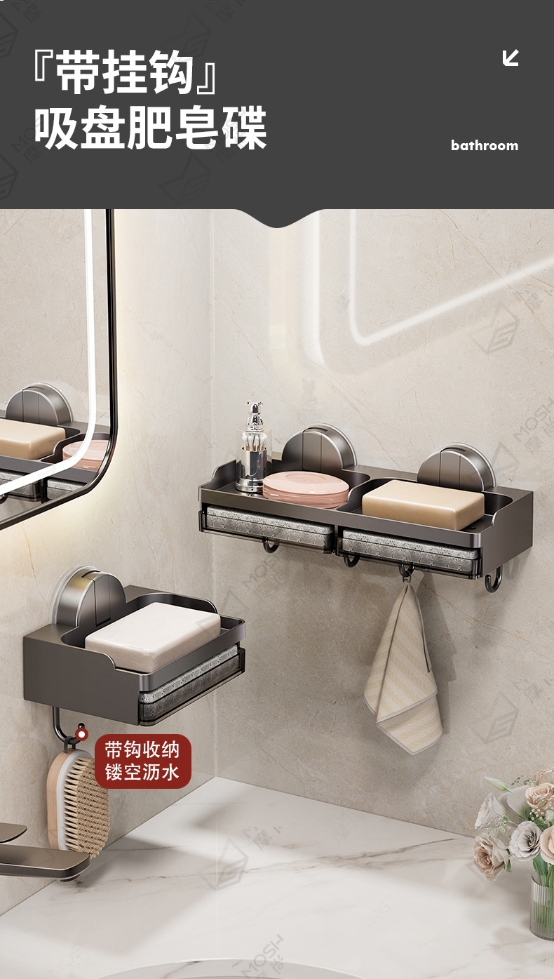 吸盤石鹸ケース浴室穴なし壁掛け式宇宙アルミトイレ棚石鹸水切りケース石鹸ラック