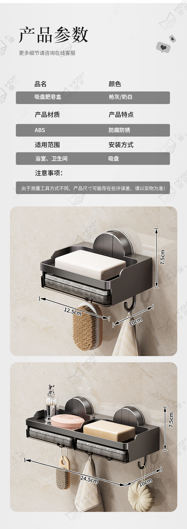 颜色 【枪灰】吸盘单格-肥皂盒【吸水海绵1个】,【奶白】吸盘单格-肥皂盒【吸水海绵1个】,【枪灰】吸盘双格-肥皂盒【吸水海绵2个】,【奶白】吸盘双格-肥皂盒【吸水海绵2个】