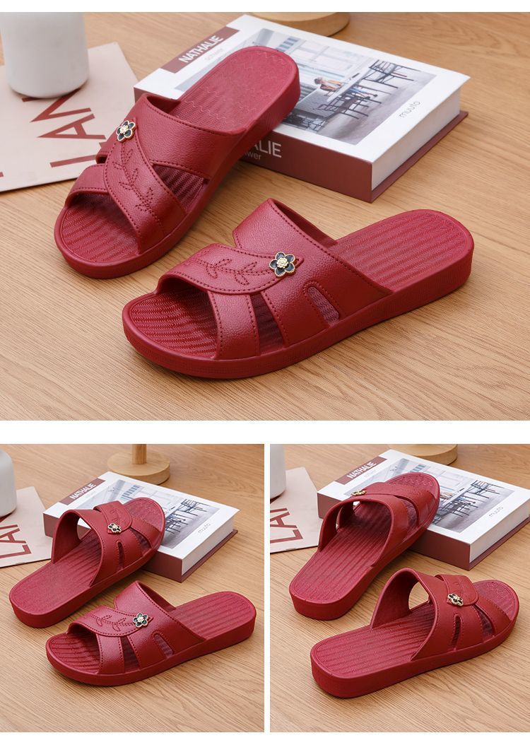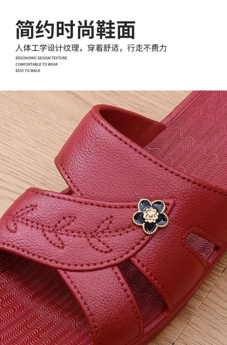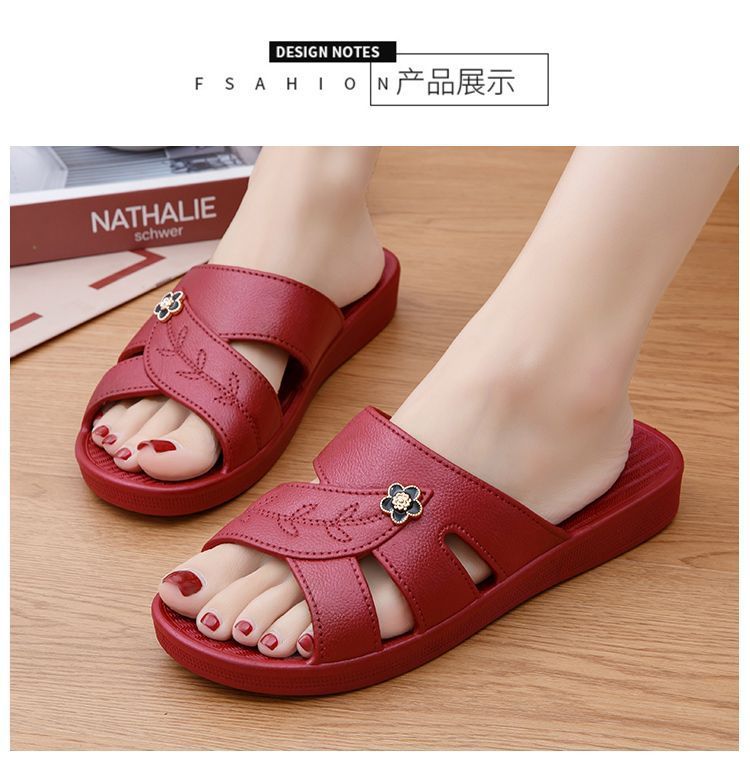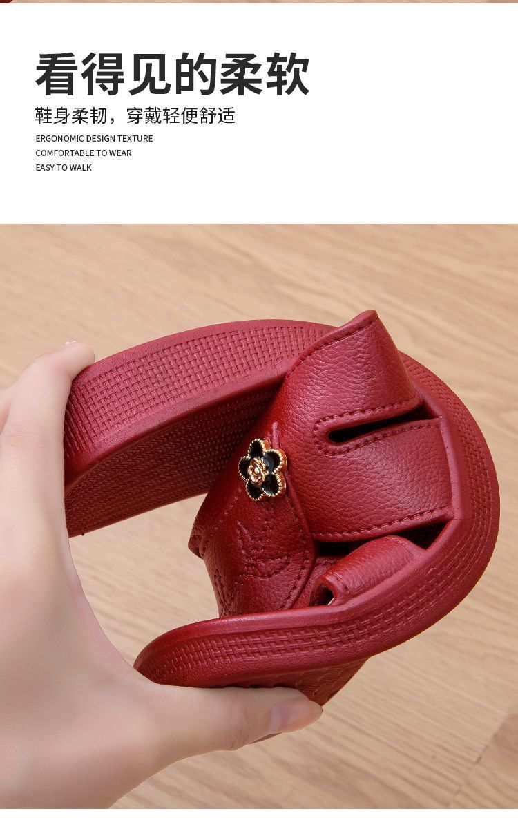赤い油の靴のお母さんの冷たいスリッパの外はファッションの夏の柔らかい底の中年の中高年の平底の滑り止めの大きいサイズの女性の靴を着ます。