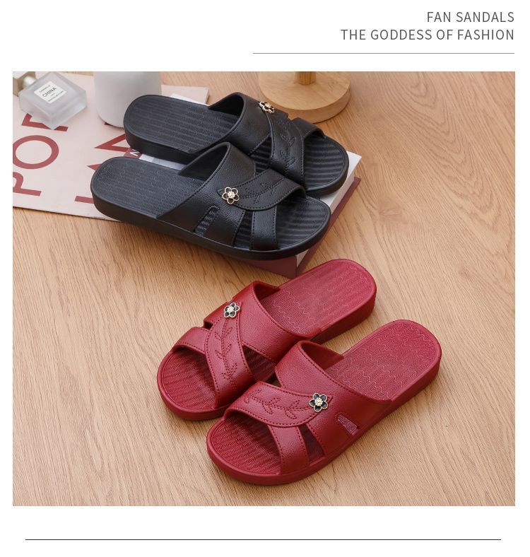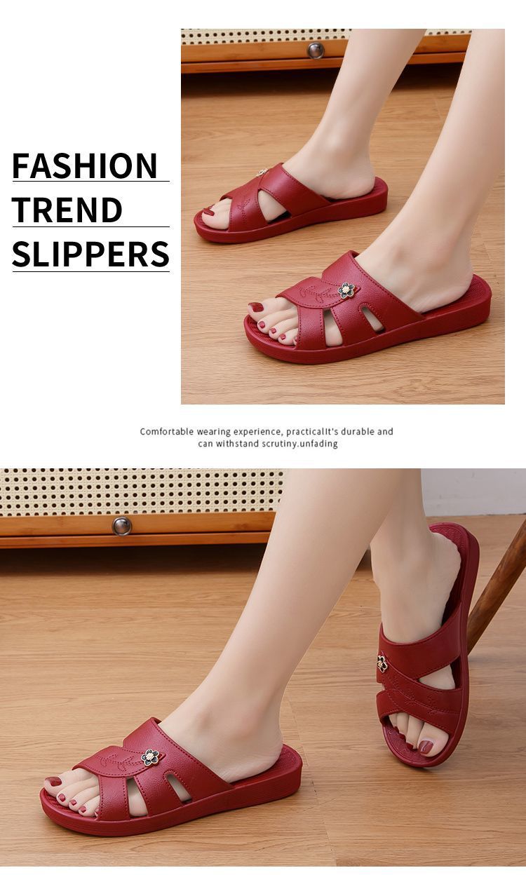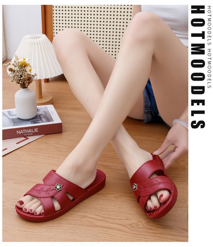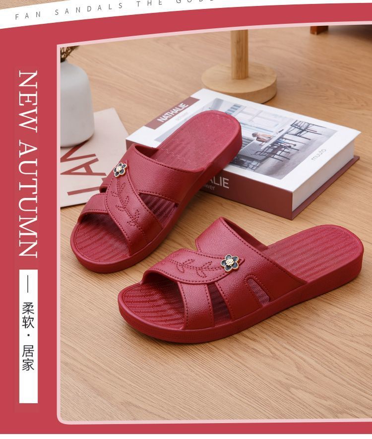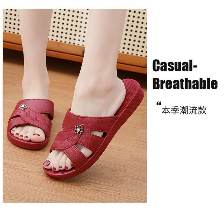 赤い油の靴のお母さんの冷たいスリッパの外はファッションの夏の柔らかい底の中年の中高年の平底の滑り止めの大きいサイズの女性の靴を着ます。