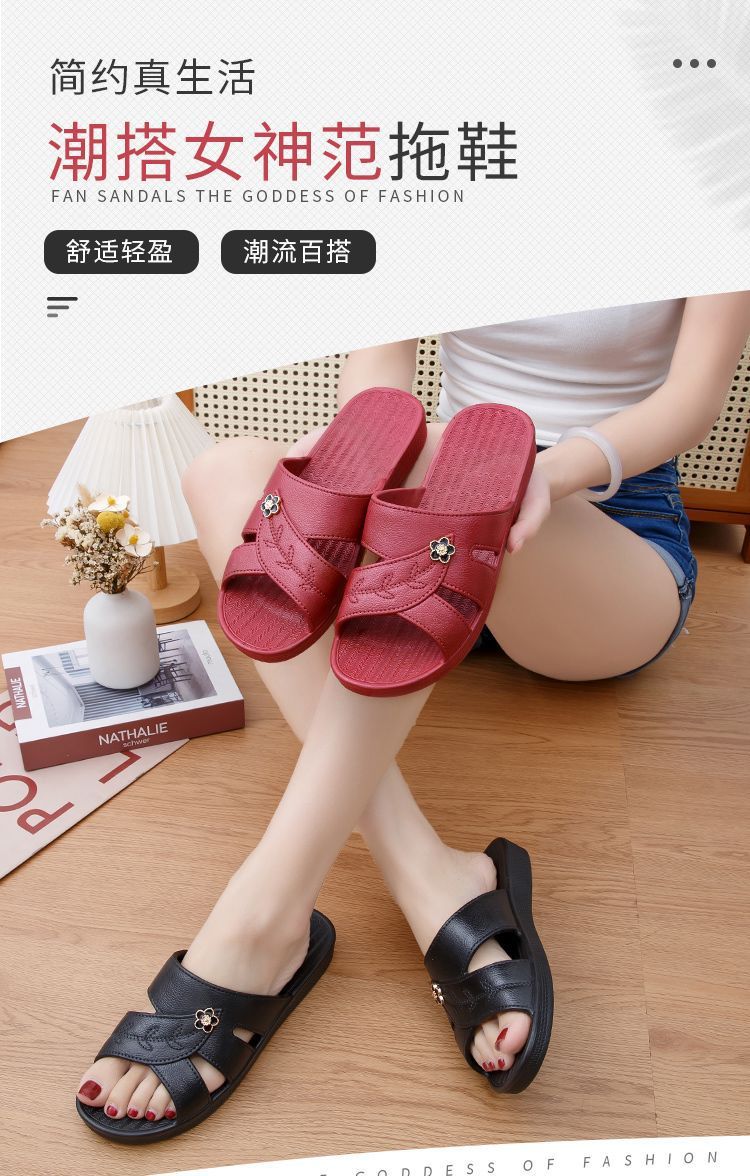 中底女士一字拖夏季休闲防滑外穿洗澡居家妈妈时尚中老年软底拖鞋