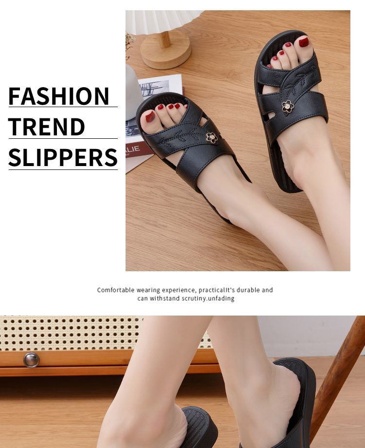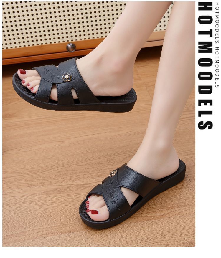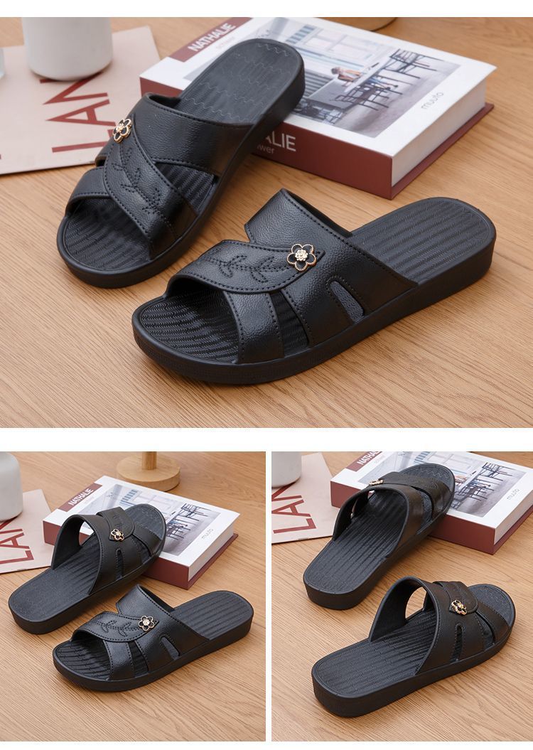 春と秋の夏のカジュアルで快適な中高年女性式屋外サンダル日常家庭用pvc平底浸油スリッパ
