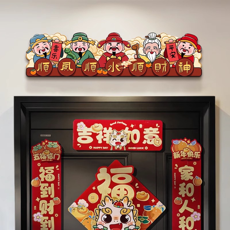 順風順水、富が訪れる、五方の富の神様の玄関飾り絵、玄関フレーム装飾画、富を呼び込む飾り絵