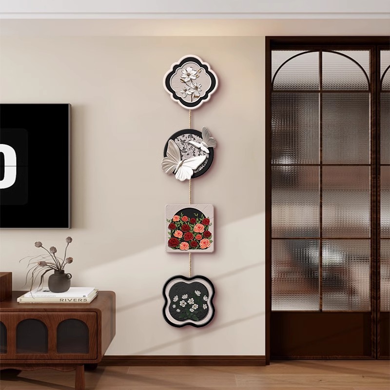 中世スタイルのテレビの背景壁に絵画を掛ける 2025 新しい玄関吊り装飾玄関ペンダントリビングルーム装飾絵画