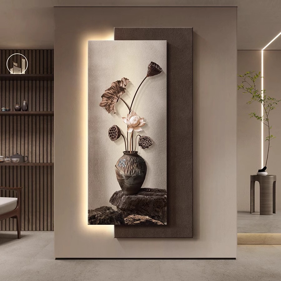 中世風の玄関装飾画、蓮の花は良い意味を持っています、玄関ホールの通路吊り絵、高級中国風雰囲気のライト絵画
