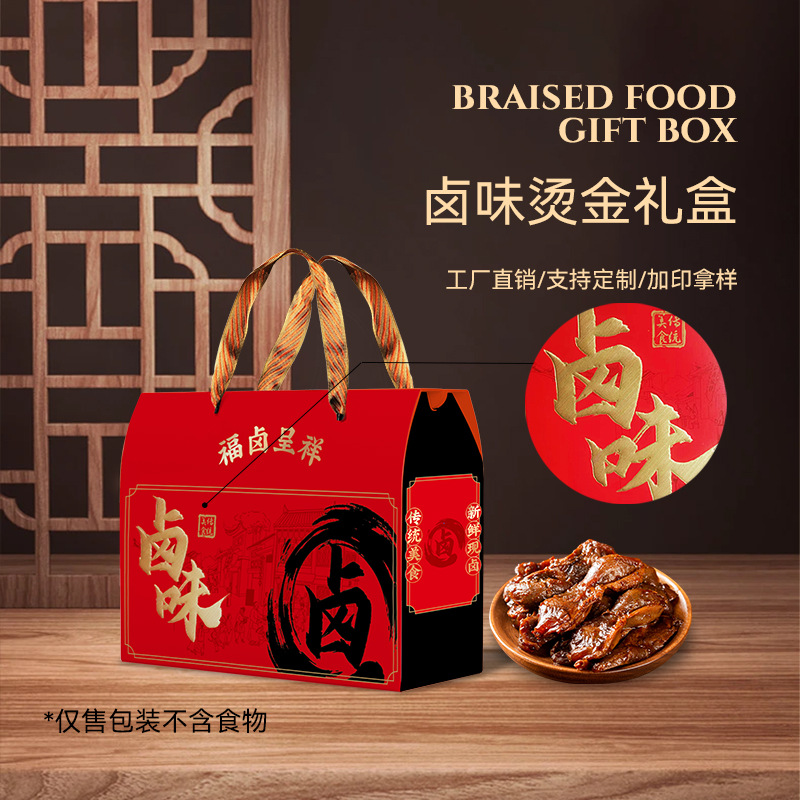新しいホットスタンピングポータブル煮込みギフトボックス空箱ハイエンドユニバーサルローストチキンとローストアヒル煮込み調理済み食品新年ギフトボックス包装