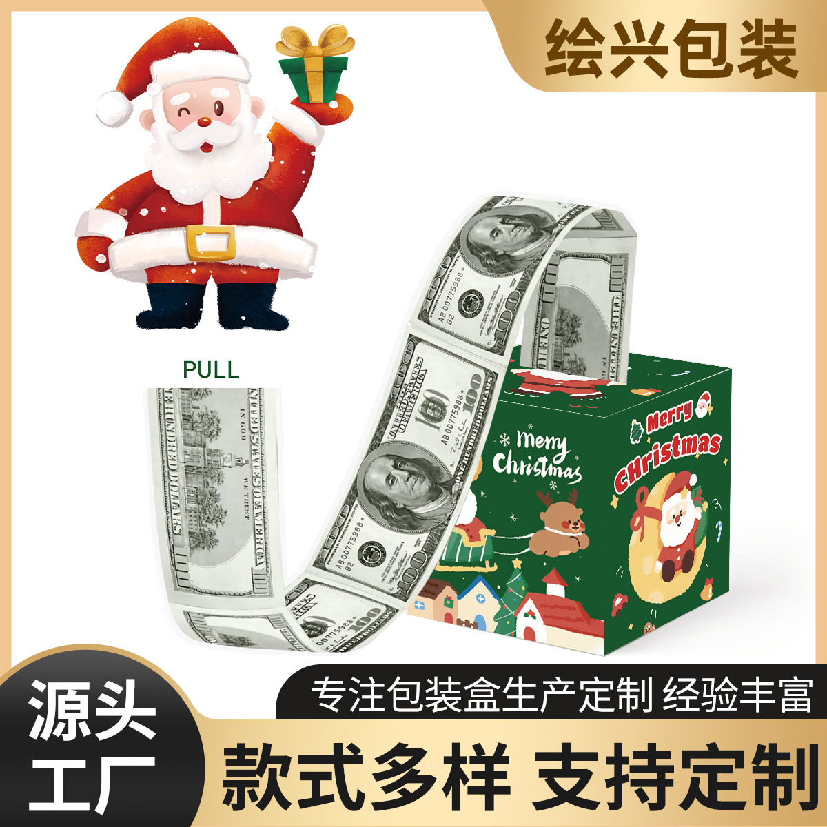 产品名称:圣诞节糖果抽钱盒圣诞派对礼品惊喜盒钞票包装盒节日聚会喜糖盒子