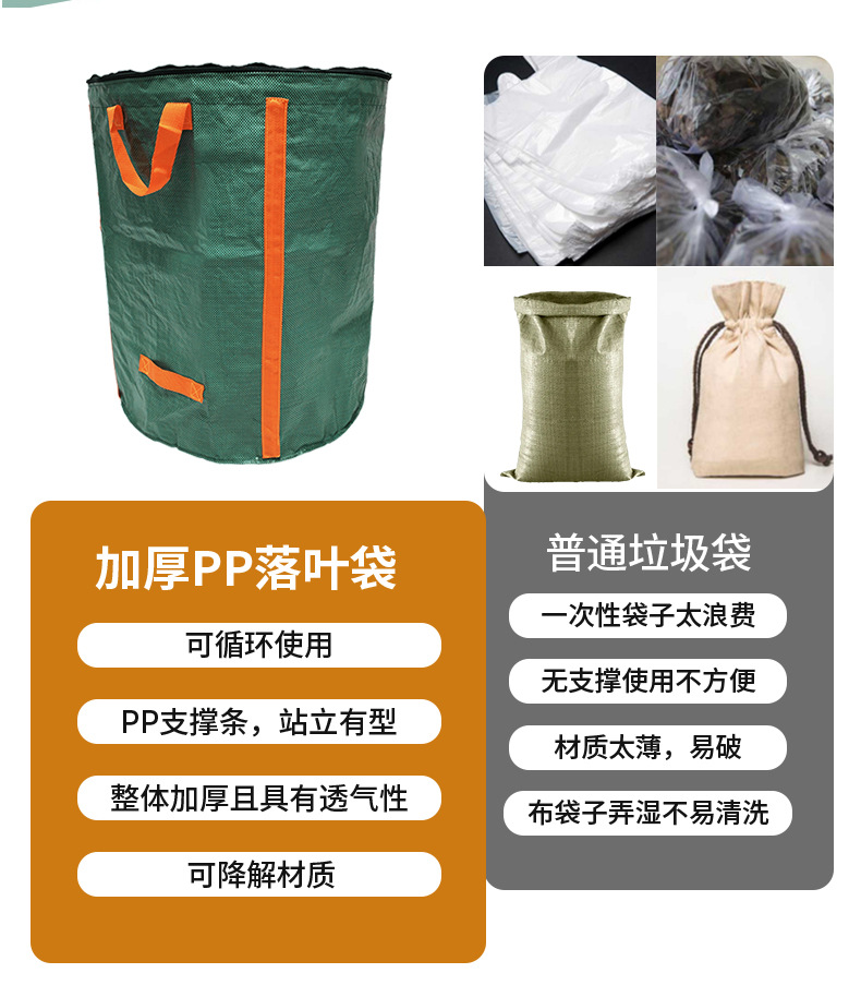 落叶袋园林树叶收纳袋PP防水编织花园垃圾袋背包袋搬家袋旅行袋