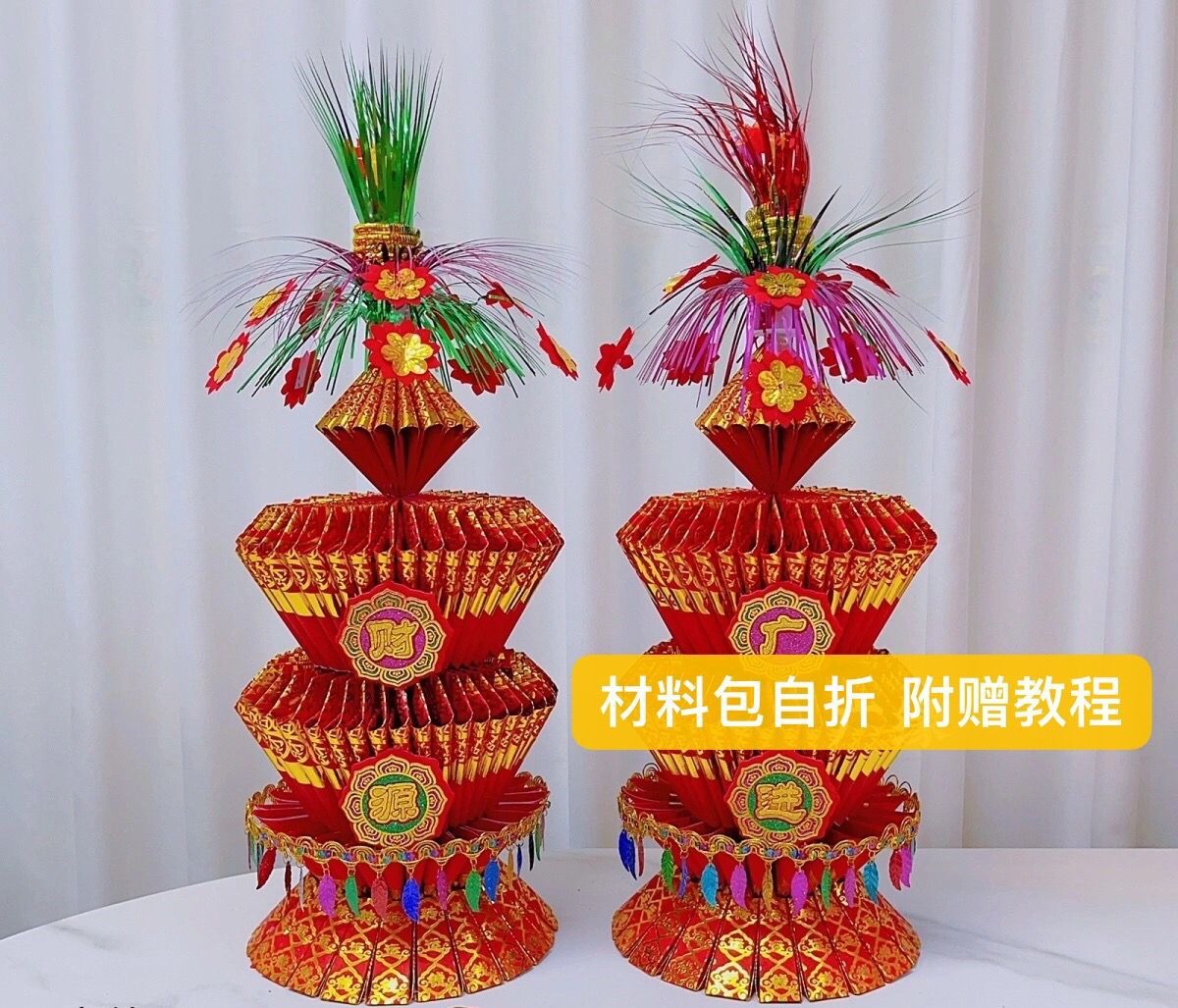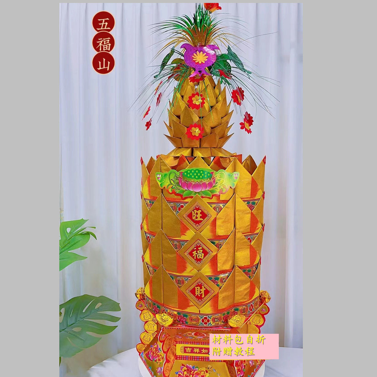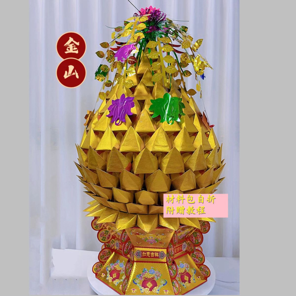 潮汕拜月娘中秋节大金山折纸折塔材料包新品配视频教程(正金真金)