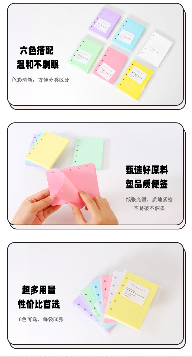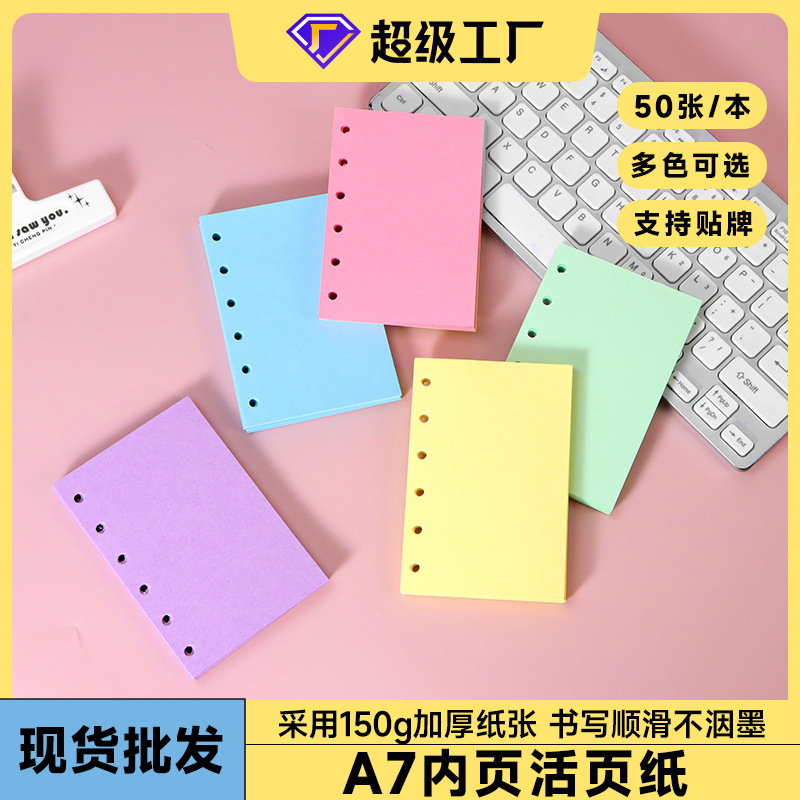 A7活页替芯纸手帐本彩色内页简约学生笔记本6孔替换芯加厚纸张