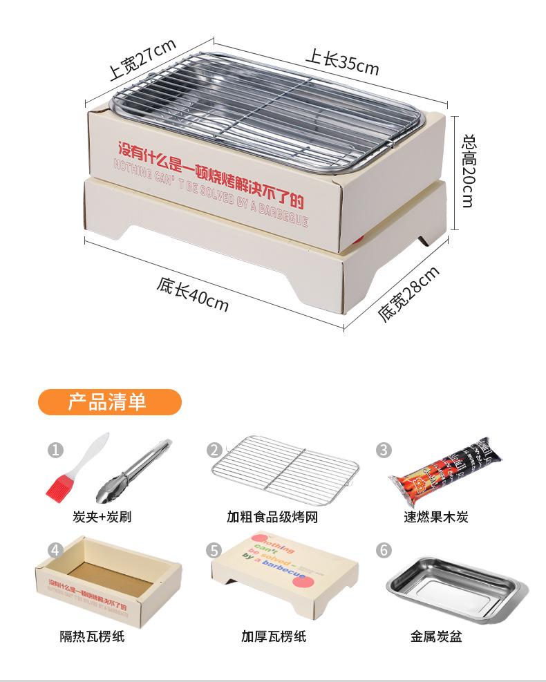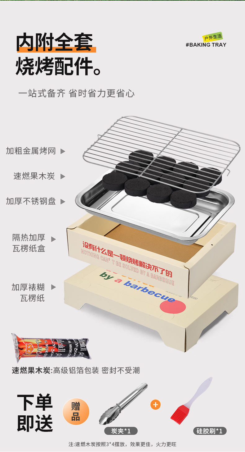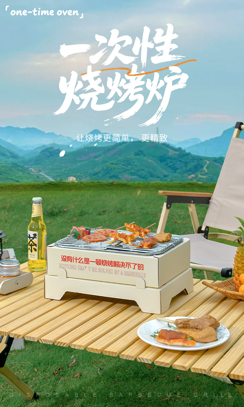 一次性烧烤炉户外野营炉子围炉煮茶木碳烤肉炉灶无烟便携烧烤架