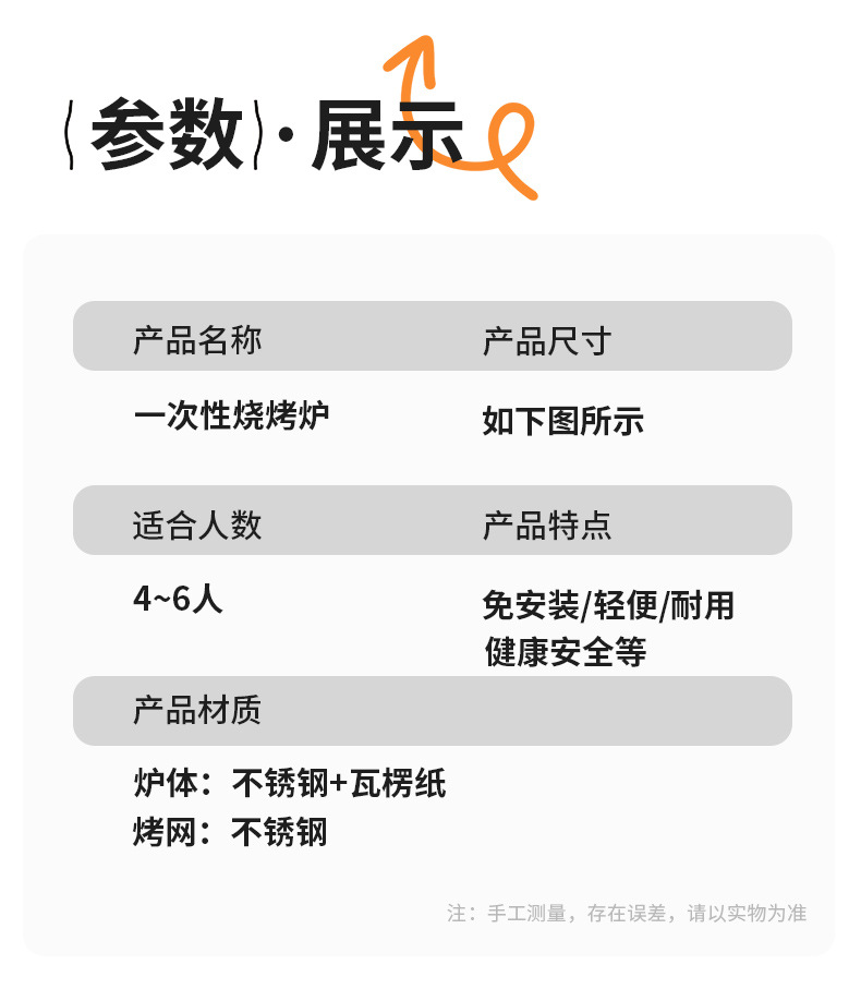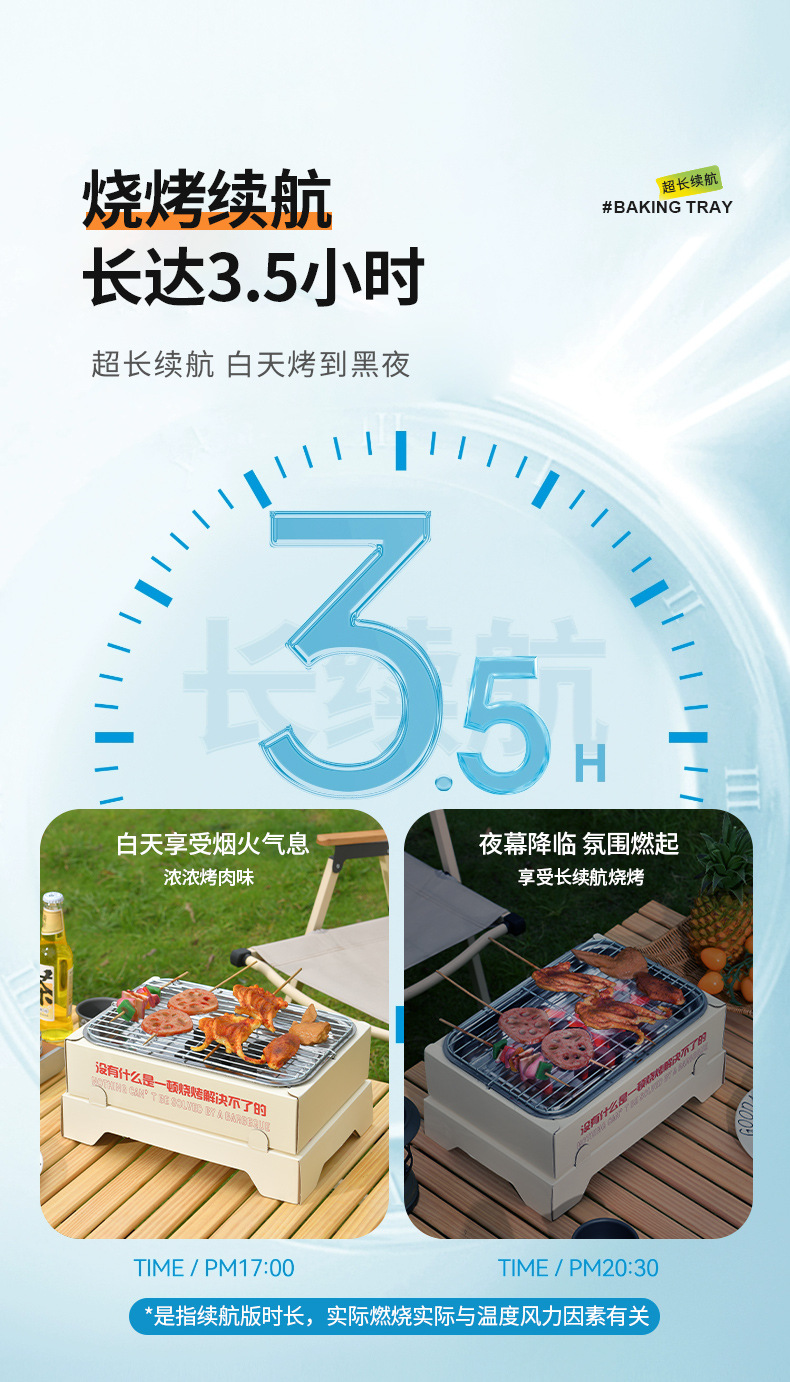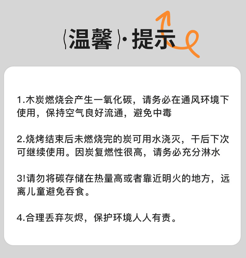 规格(长*宽*高) 基础款-不含木碳,体验款-可烧烤1-2小时(含10块标准木炭),高级款-可烧烤2-3小时(含30块标准木炭),★推荐★续航款-可烧烤3-4小时(含50块标准木炭),速燃碳补充包*5(50块)