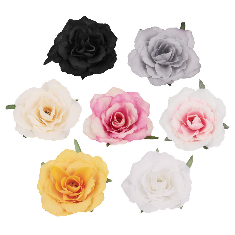 月季の花の頭の置物をシミュレーションして生け花を飾って写真を撮ります。