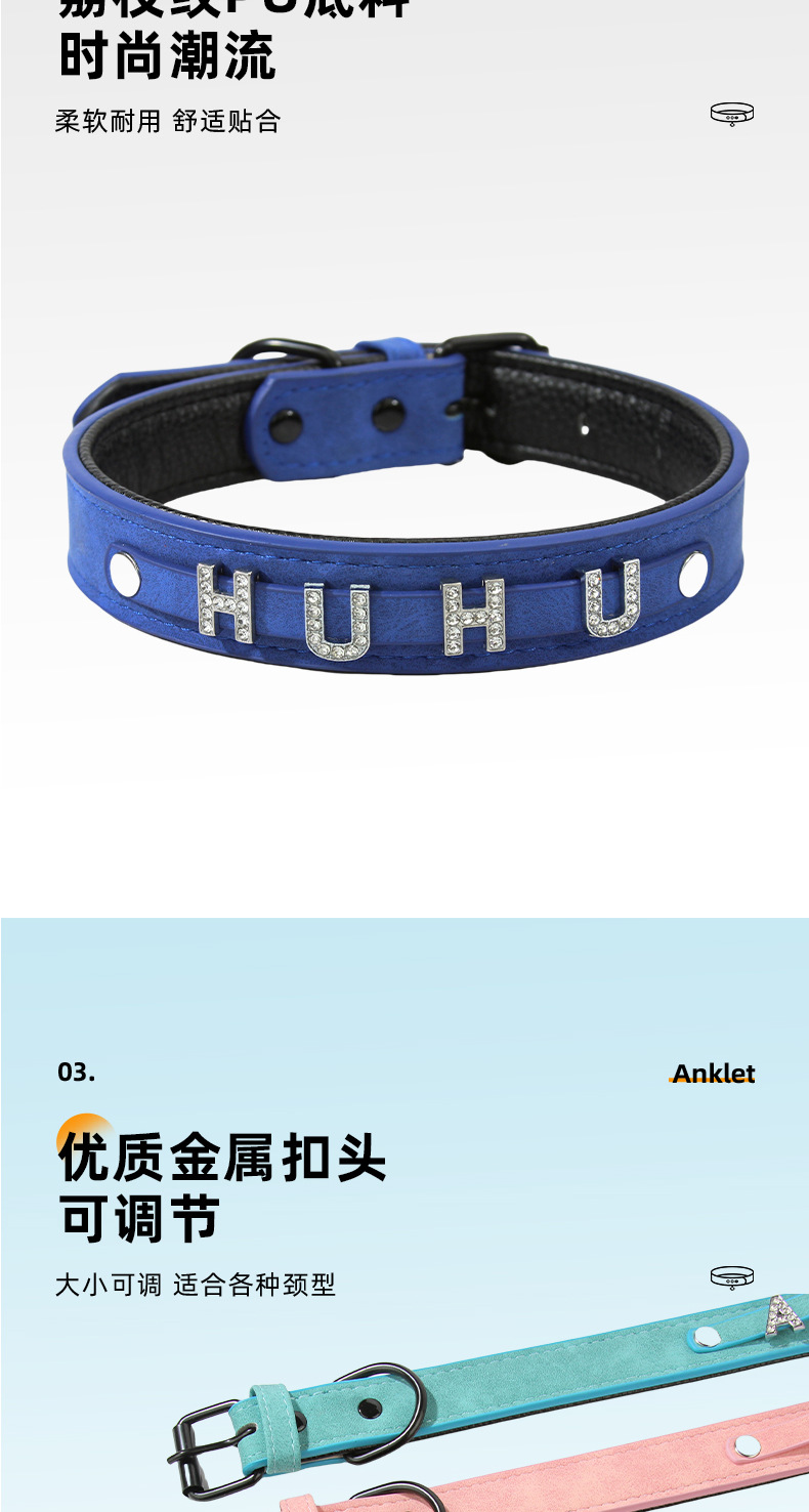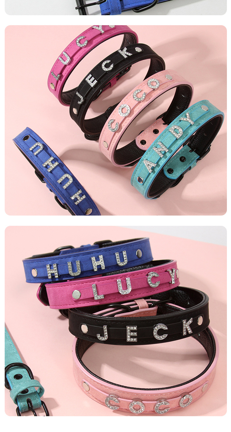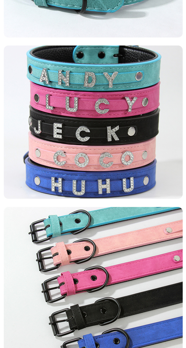 厳選されたアルファベットDIYペット首輪猫ネックレス明るい皮PU装飾革牽引ロープ犬アクセサリーchoice