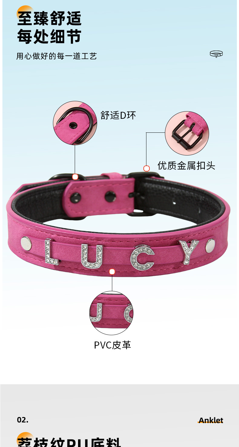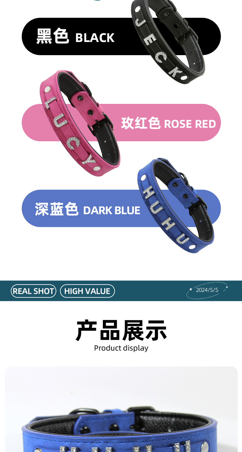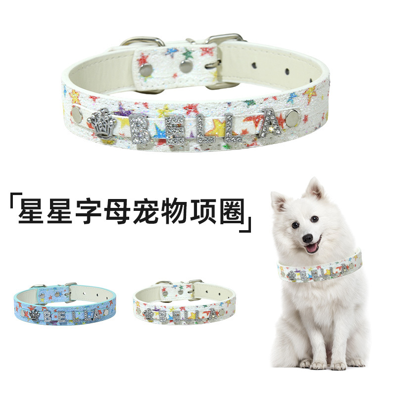 厳選されたアルファベットDIYペット首輪猫ネックレス明るい皮PU装飾革牽引ロープ犬アクセサリーchoice