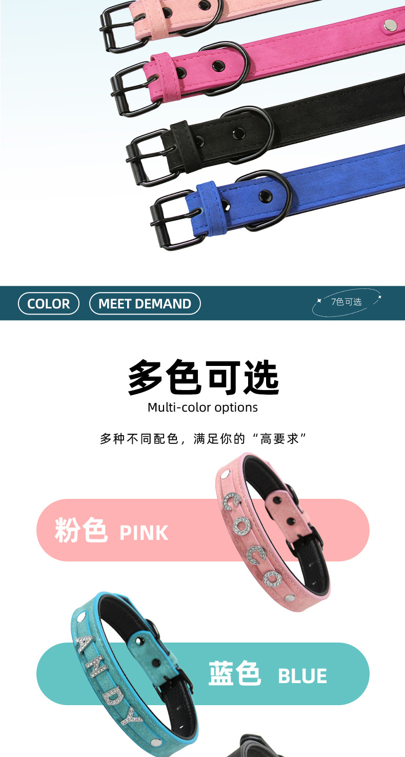 クロスボーダーラブラインストーンペット首輪ドットドリル小型および中型犬首輪快適なPUレザー犬首輪ドロップシッピング