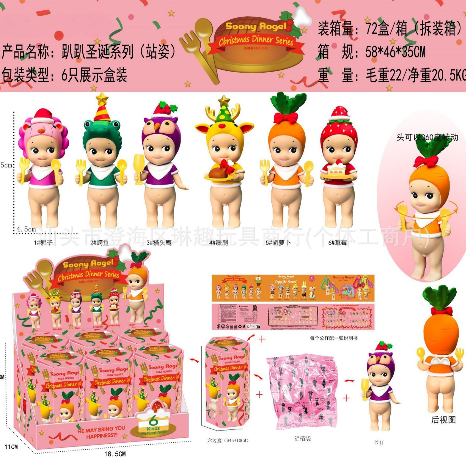 跨境新品圣诞趴趴天使托腮盲盒手办装车载摆件手机装饰
