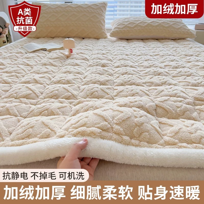 冬季加厚牛奶绒床褥垫单人宿舍床垫软垫子珊瑚绒夹棉床单加绒床盖