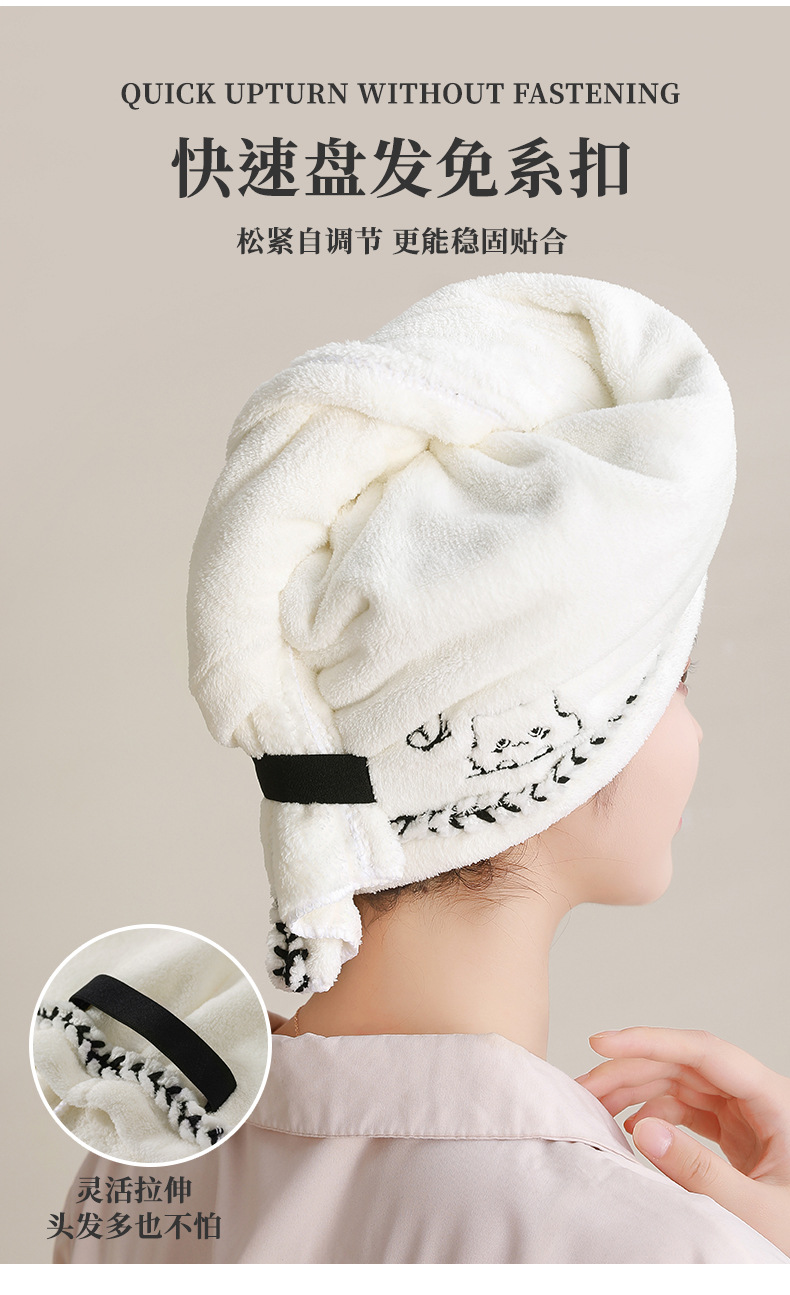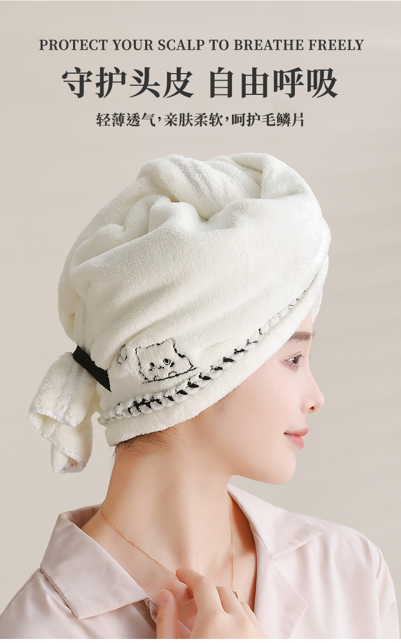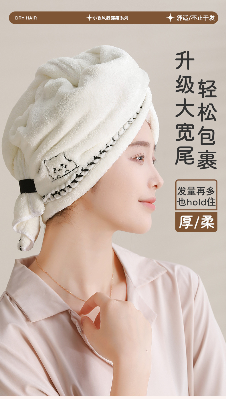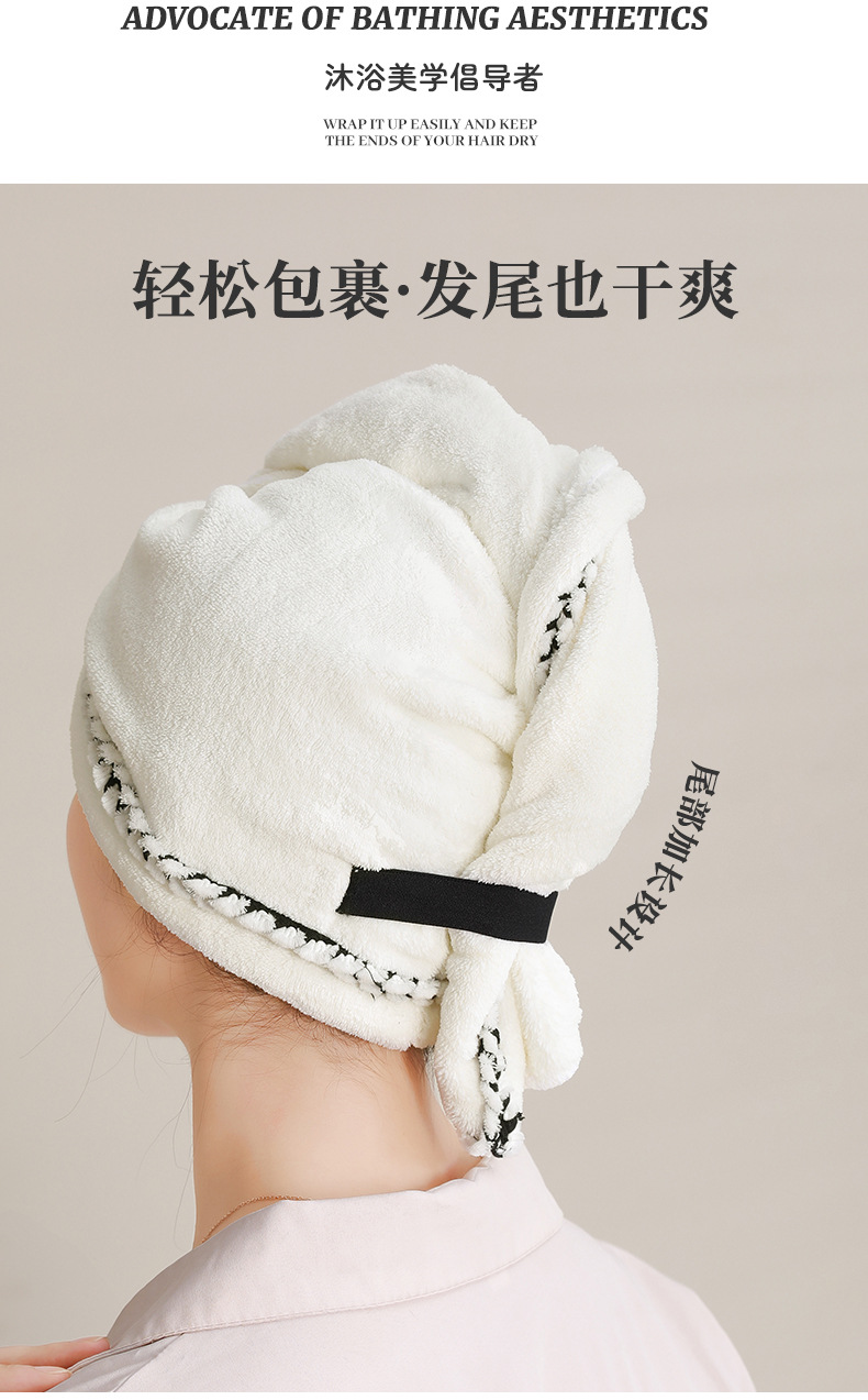 躲猫猫珊瑚绒宽尾干发帽柔软吸水速干加厚包头浴帽一片式绑带长发