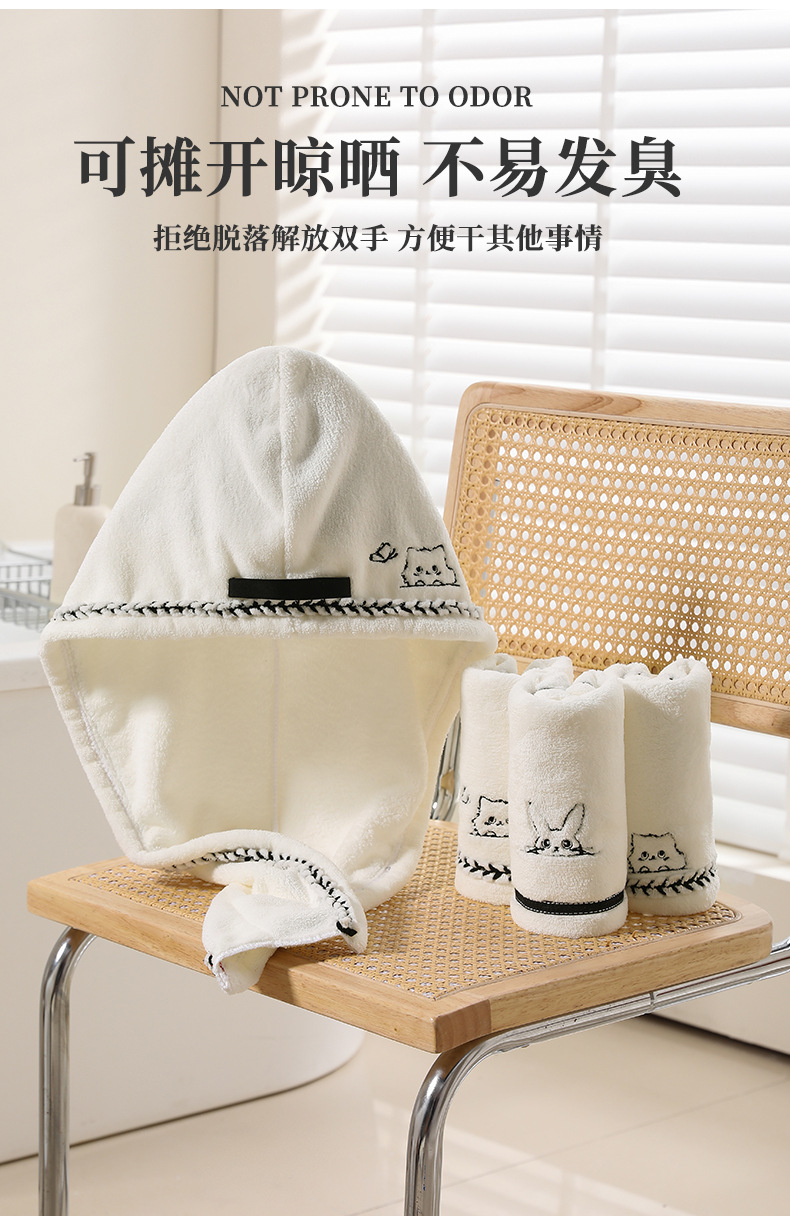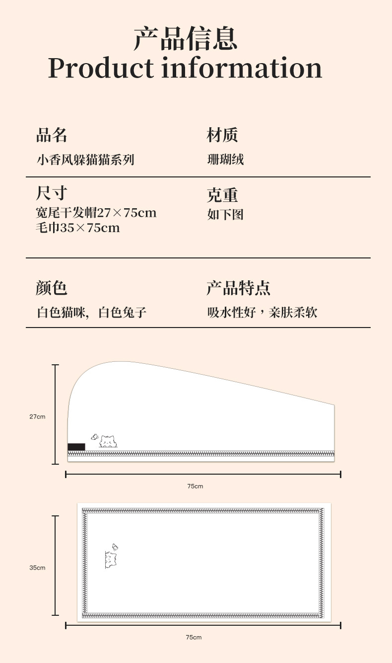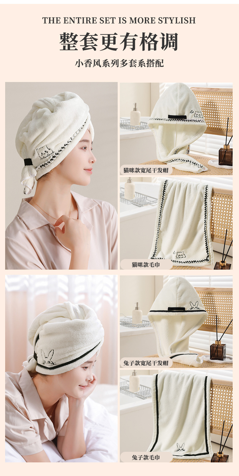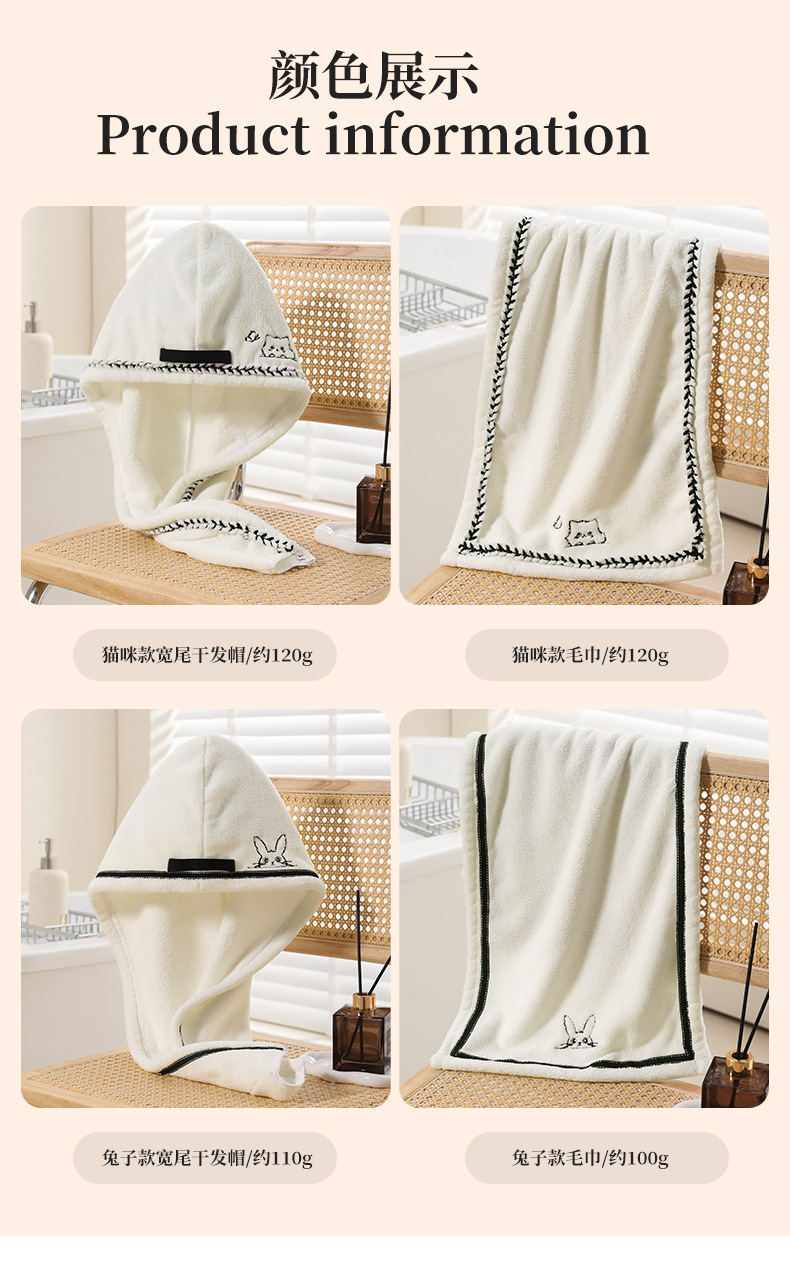 颜色 干发帽-兔子,干发帽-猫咪,毛巾-兔子,毛巾-猫咪