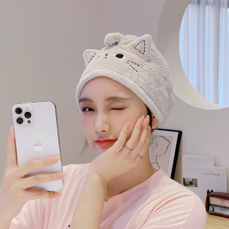 Ins風の漫画の無邪気な猫の耳の乾燥した髪の帽子の顔を洗って化粧を落とします。