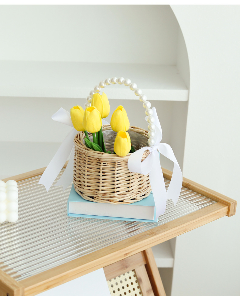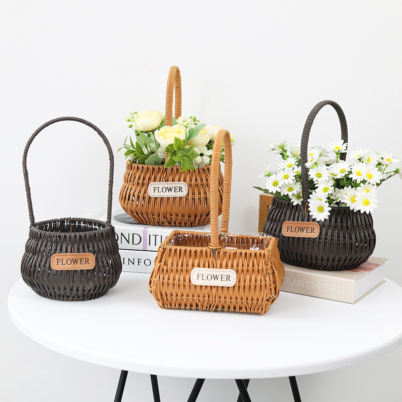 藤編み手提げ花かご花芸生け花生け花模造藤編みかご柳編み花かご客間置物写真撮影手提げかご
