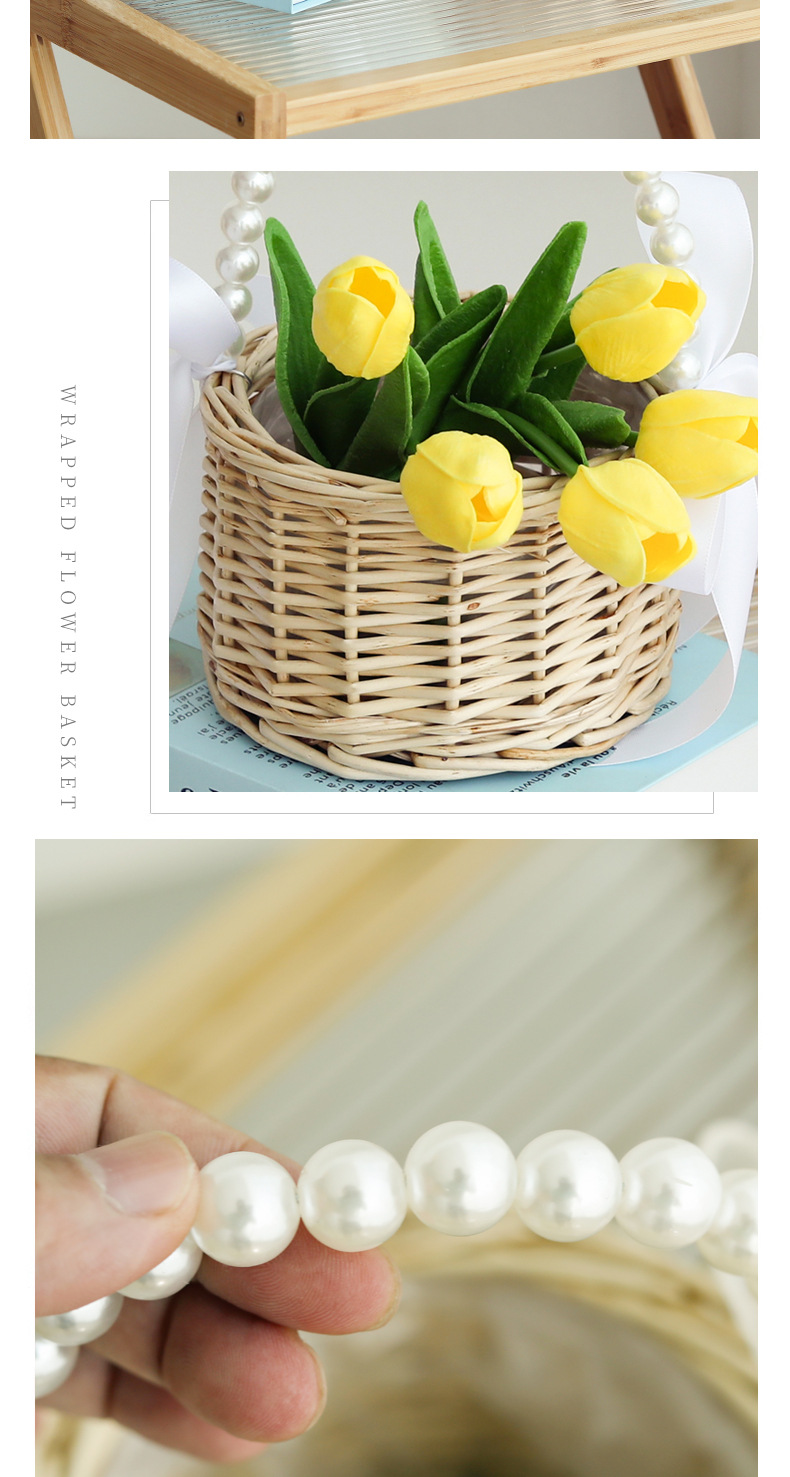 国境を越えたプラスチック製の真珠模様の手持ち花かご、花屋のフラワーアレンジメント、お土産かご、草編み柳編み収納かご、卸売
