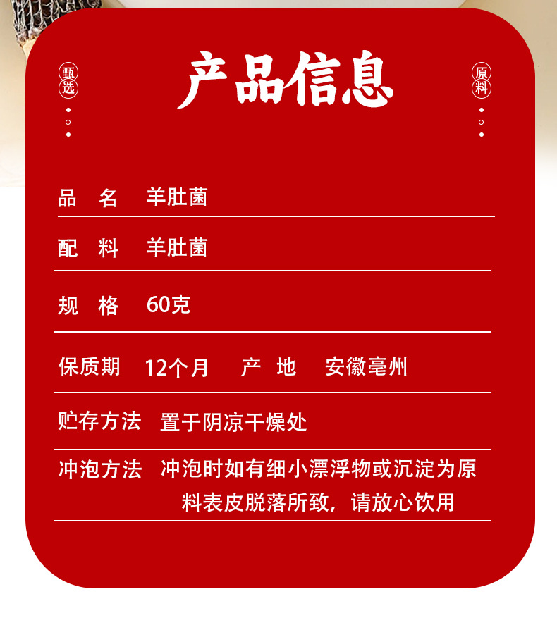 包装规格 羊肚菌礼盒60g/盒