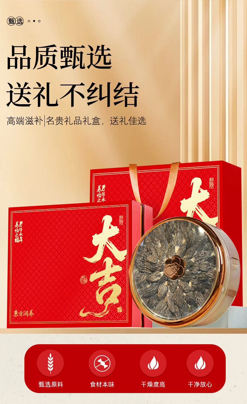 福東海中秋節団購羊肚菌100gギフトボックス山産菌類乾物スープ用松茸会社ギフト配送