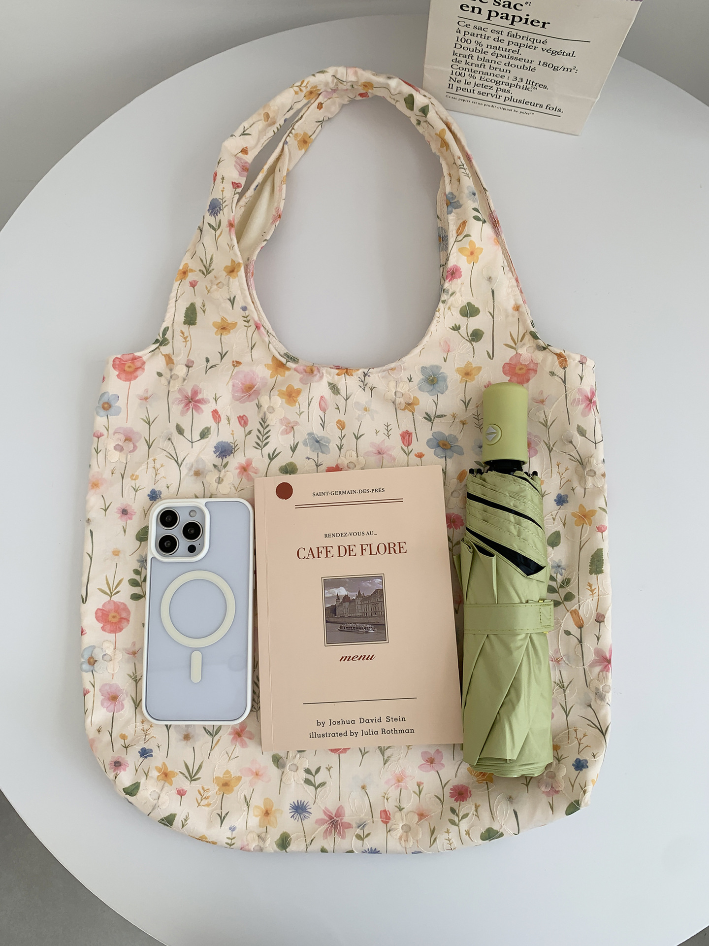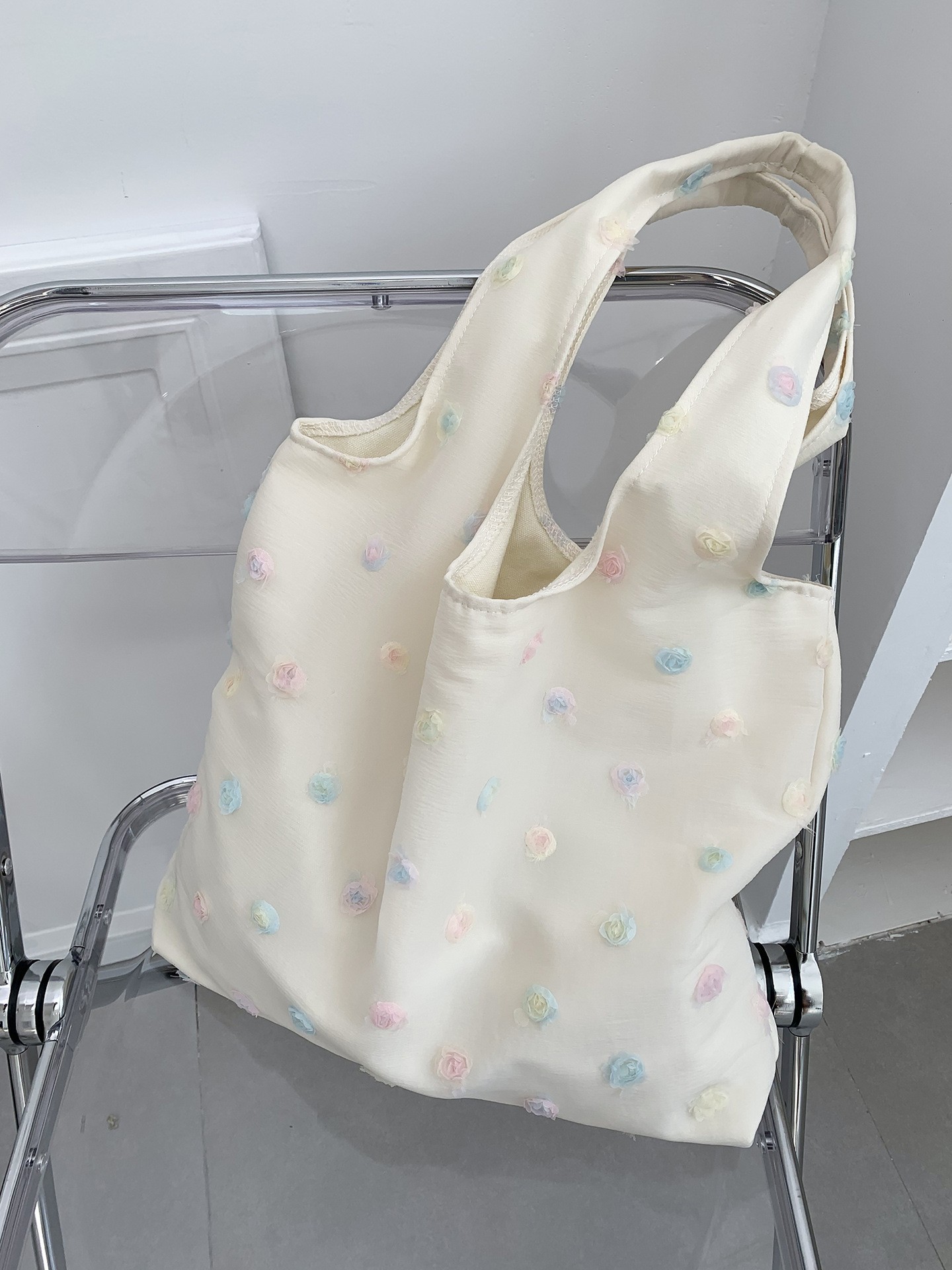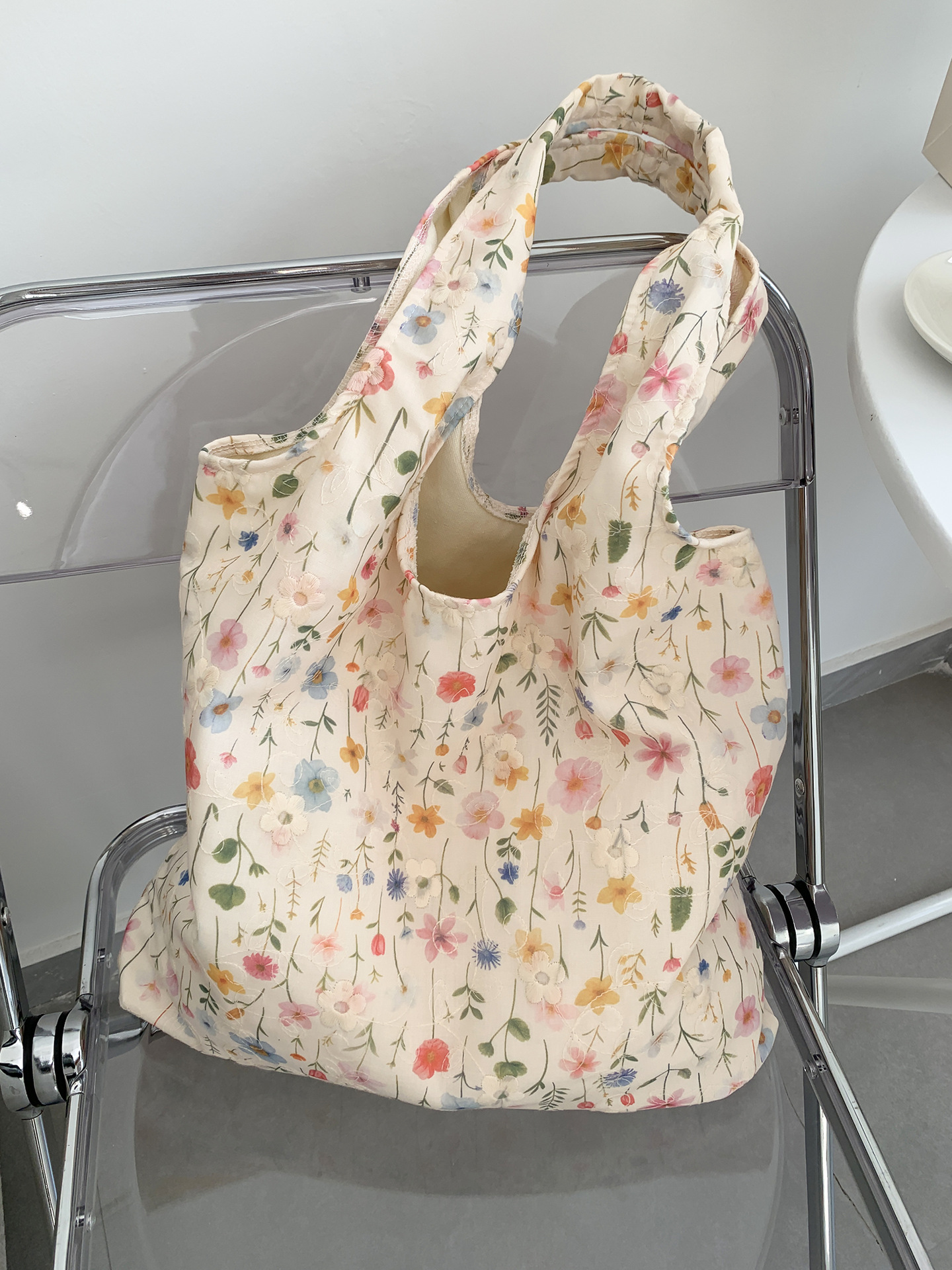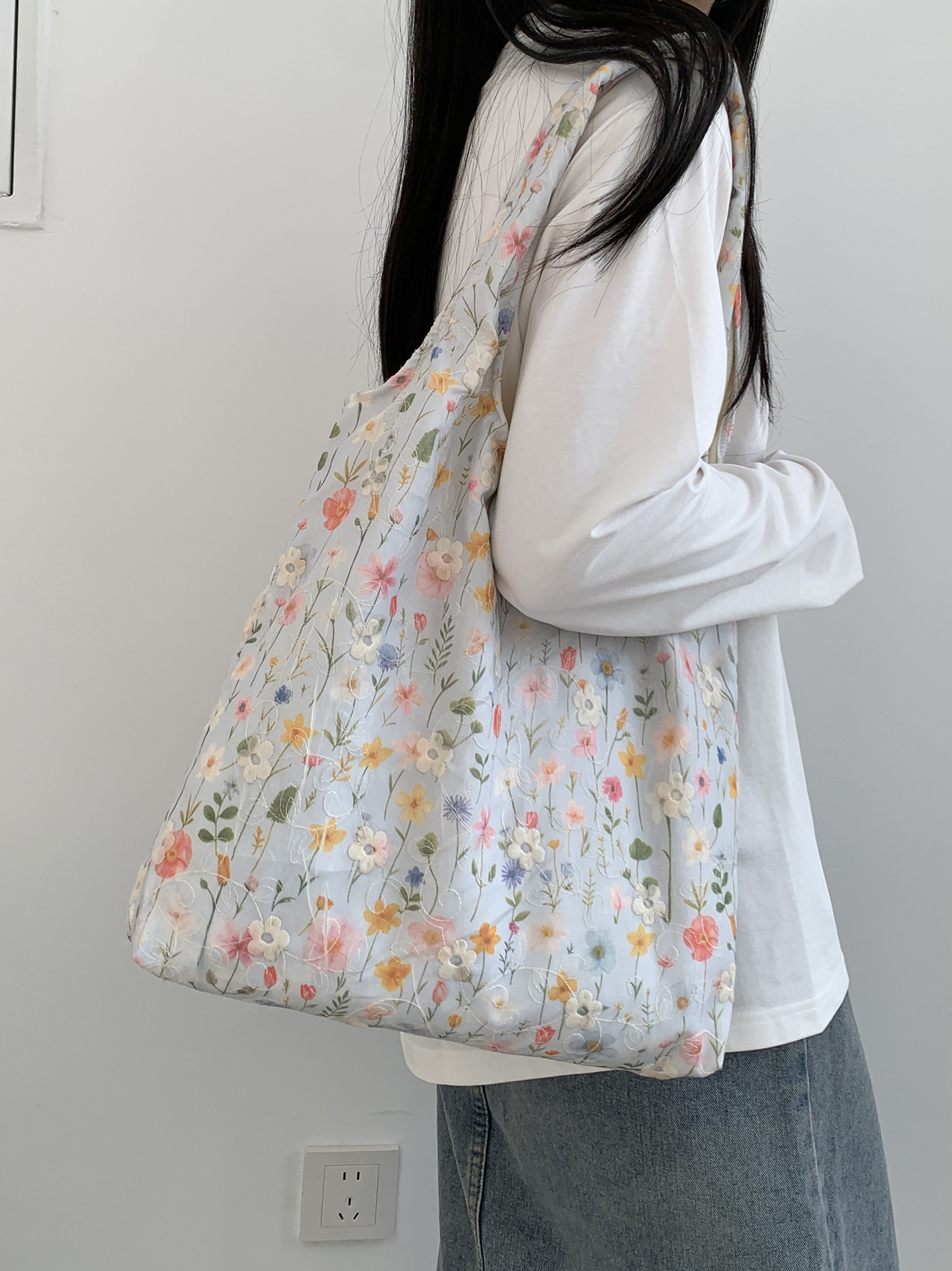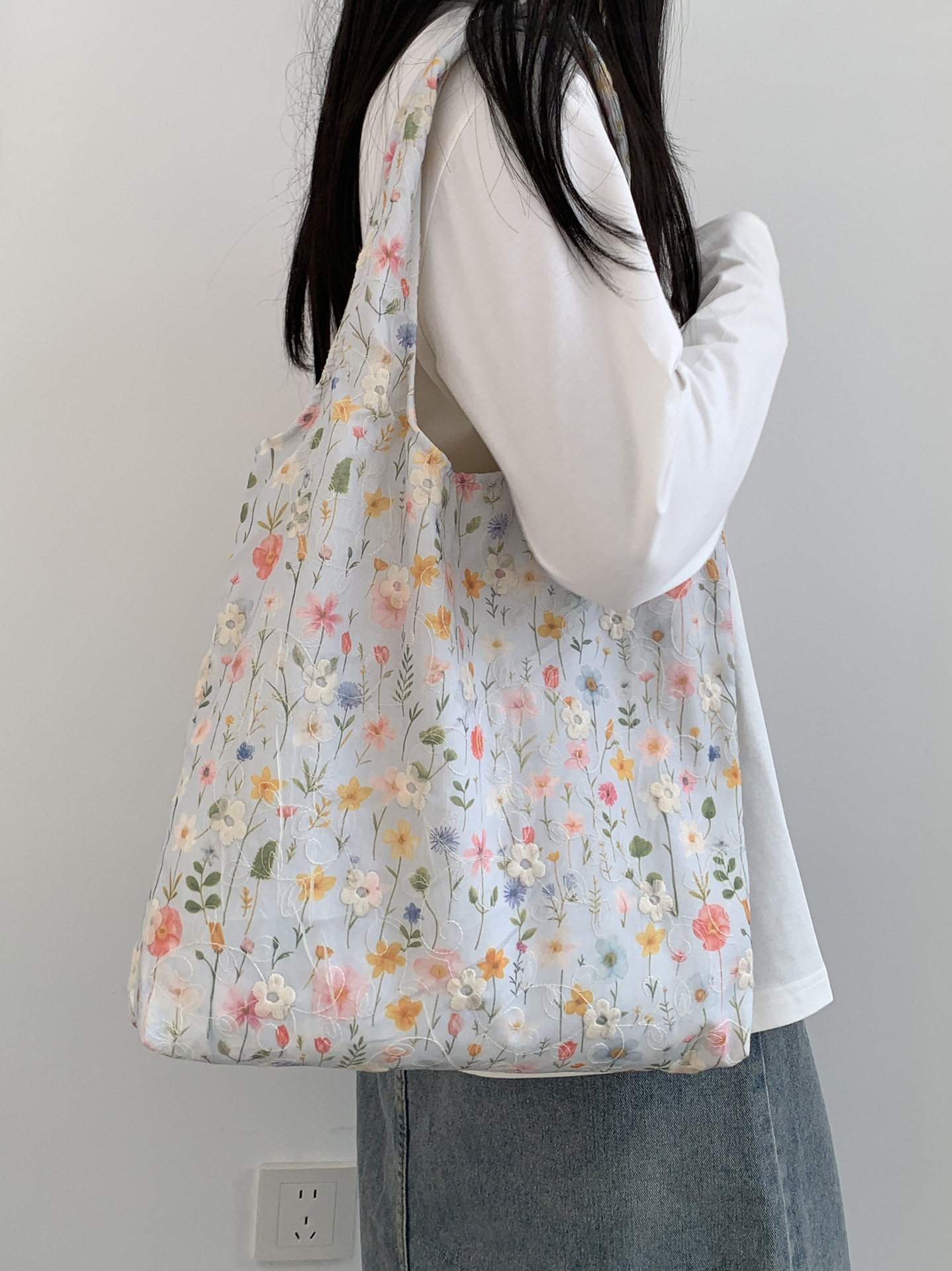 韓国の個性的なシンプルでゆったりとした妖精のような花柄レースのショルダーバッグ、ハンドバッグ、キャンバスバッグ、デザイン性が高い