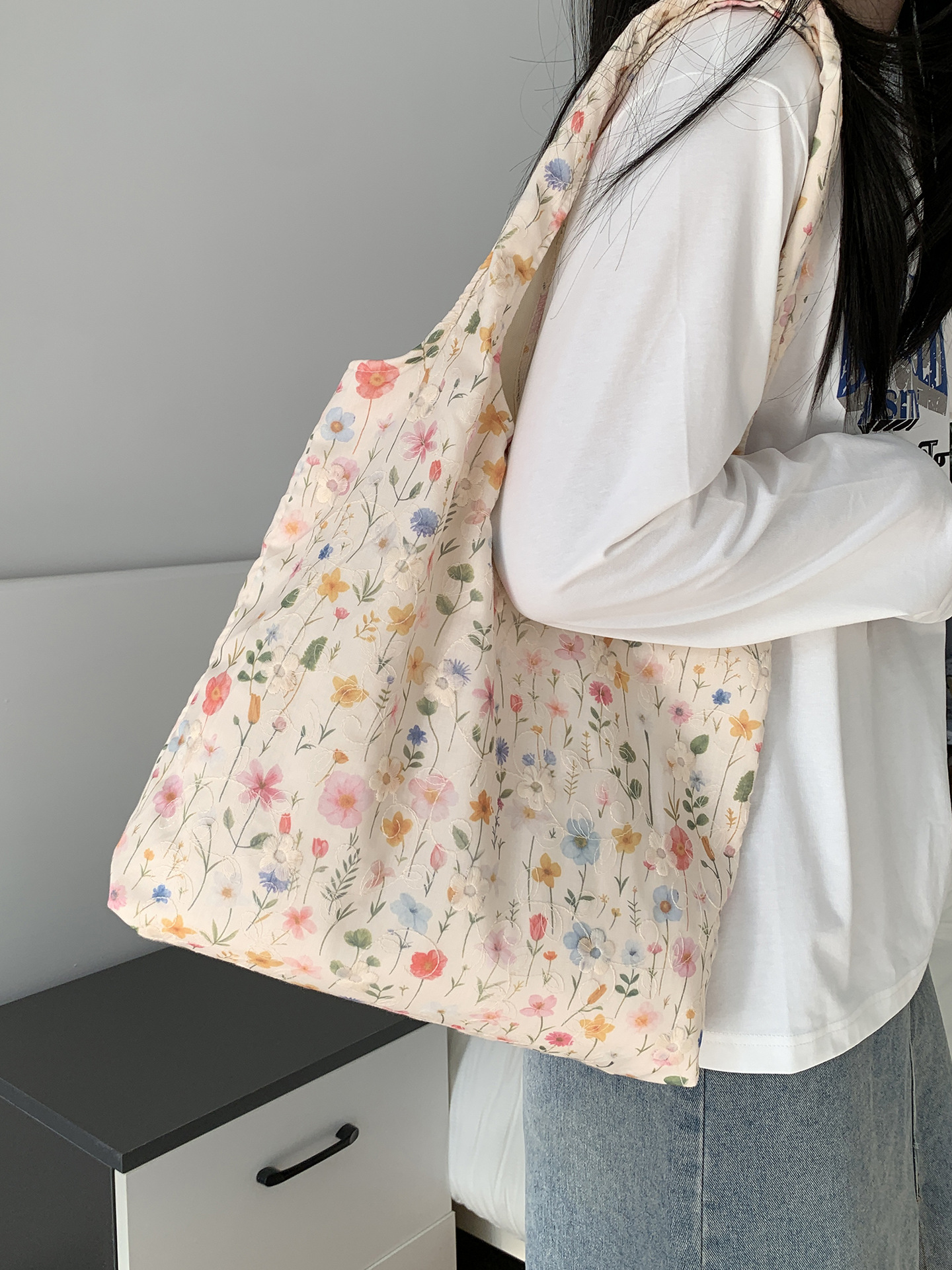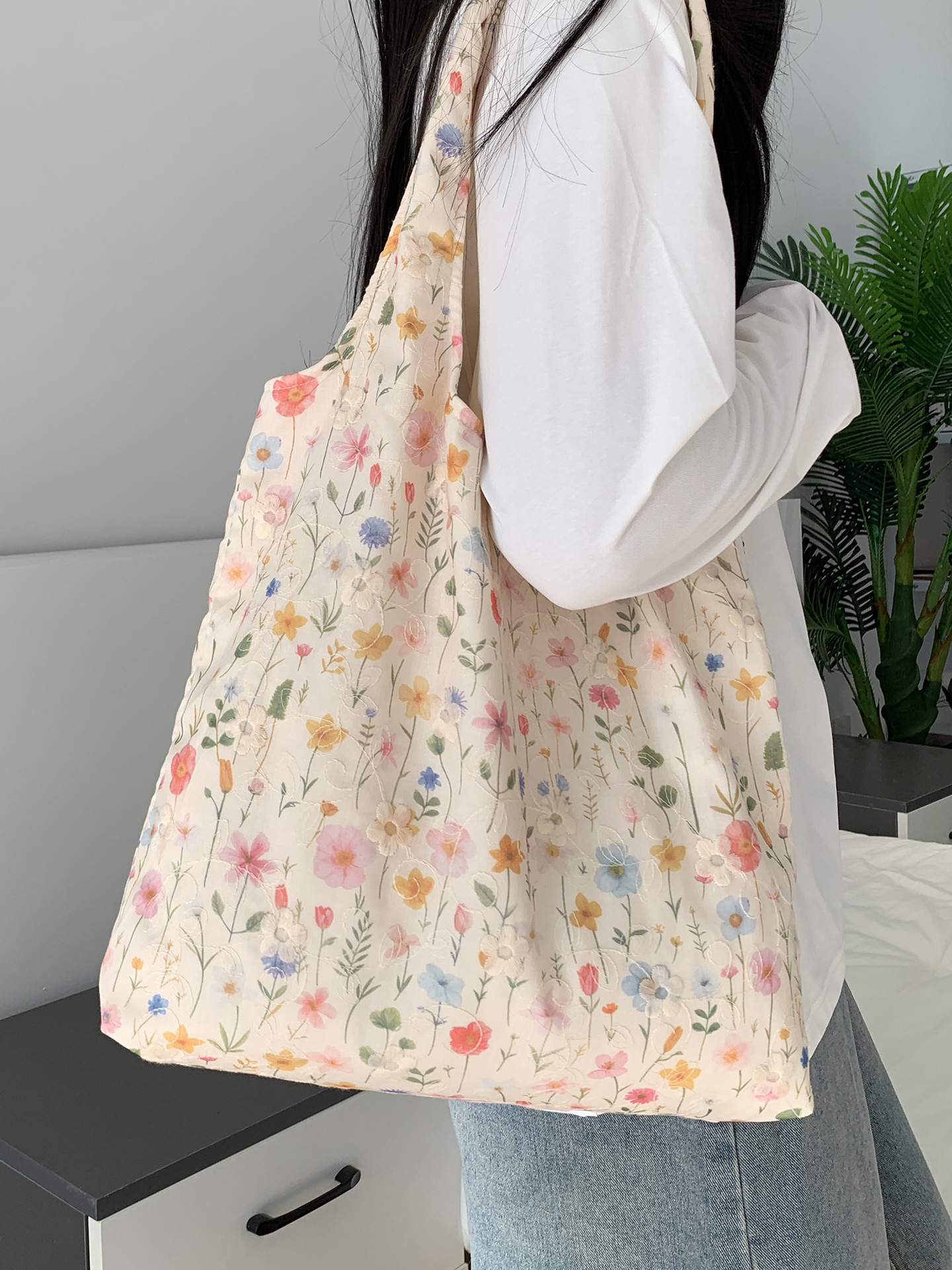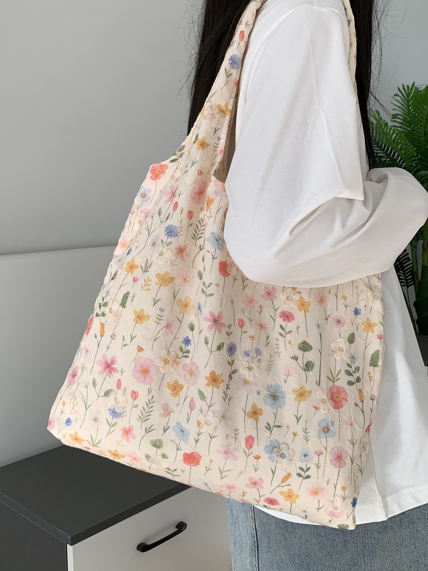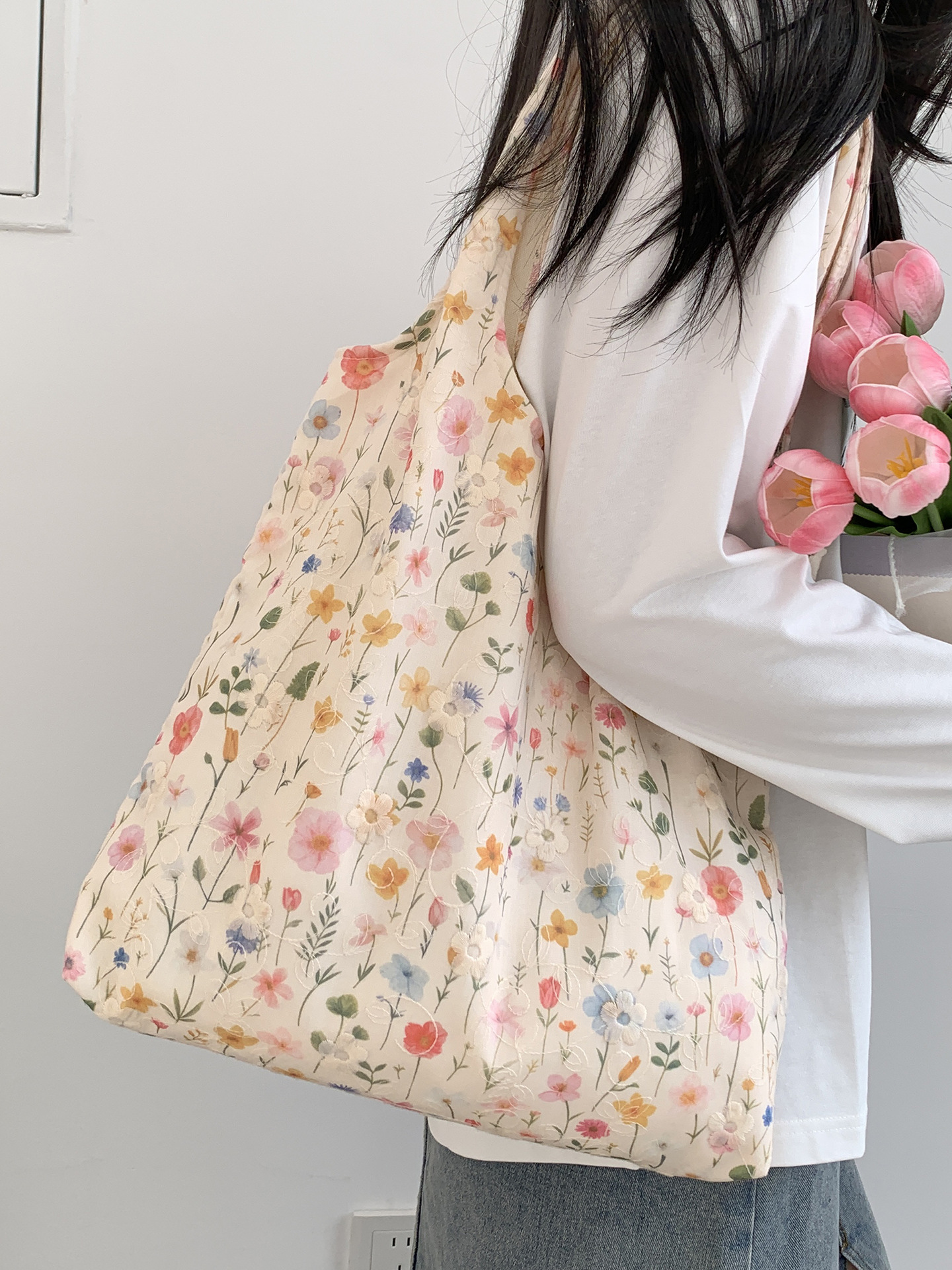 包包韩国小众刺绣碎花帆布包女单肩手提小清新百搭布袋慵懒风韩系