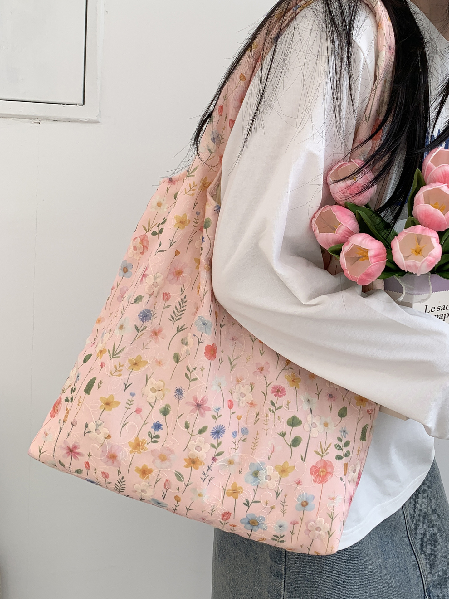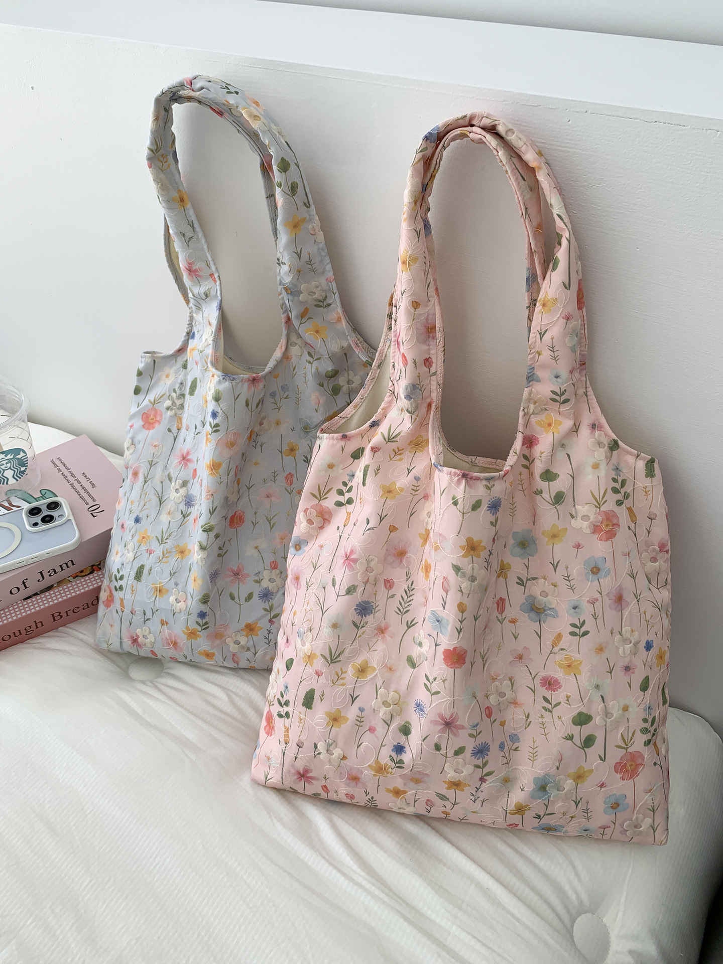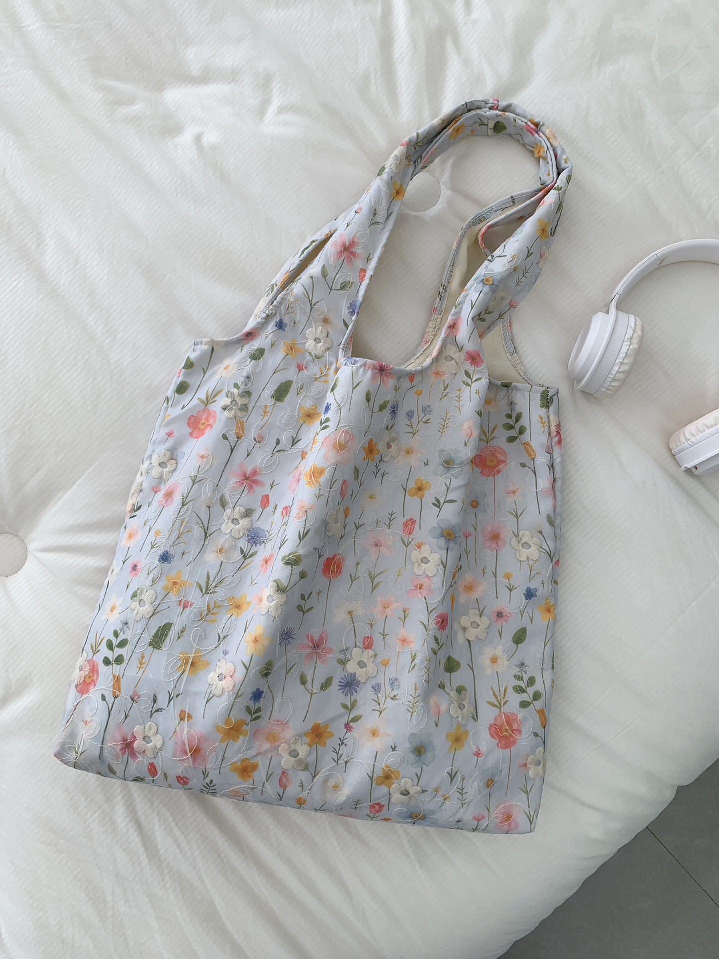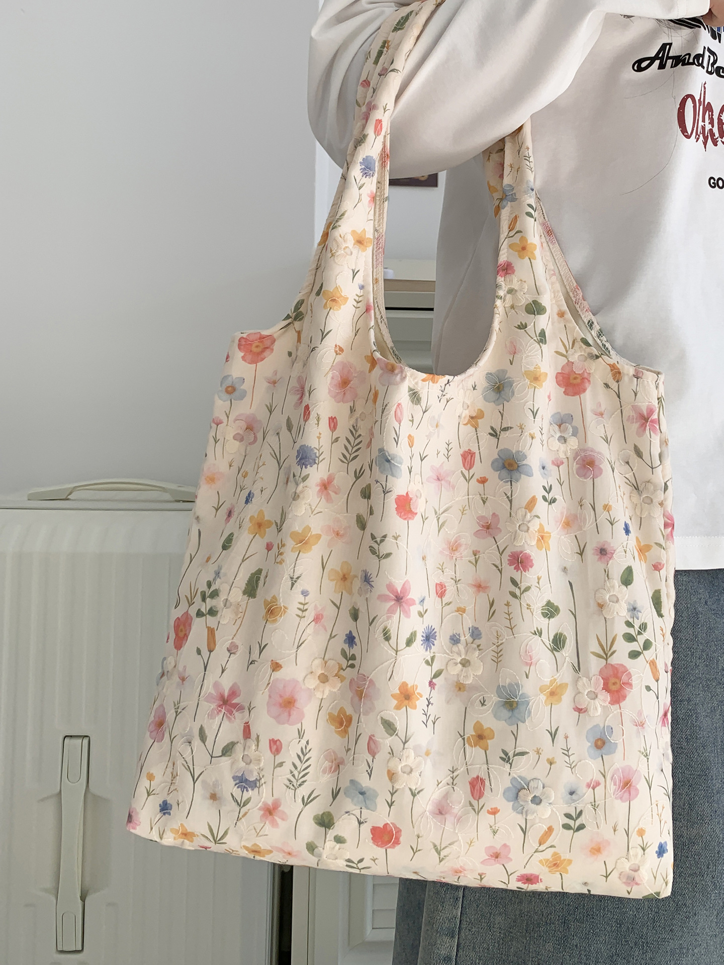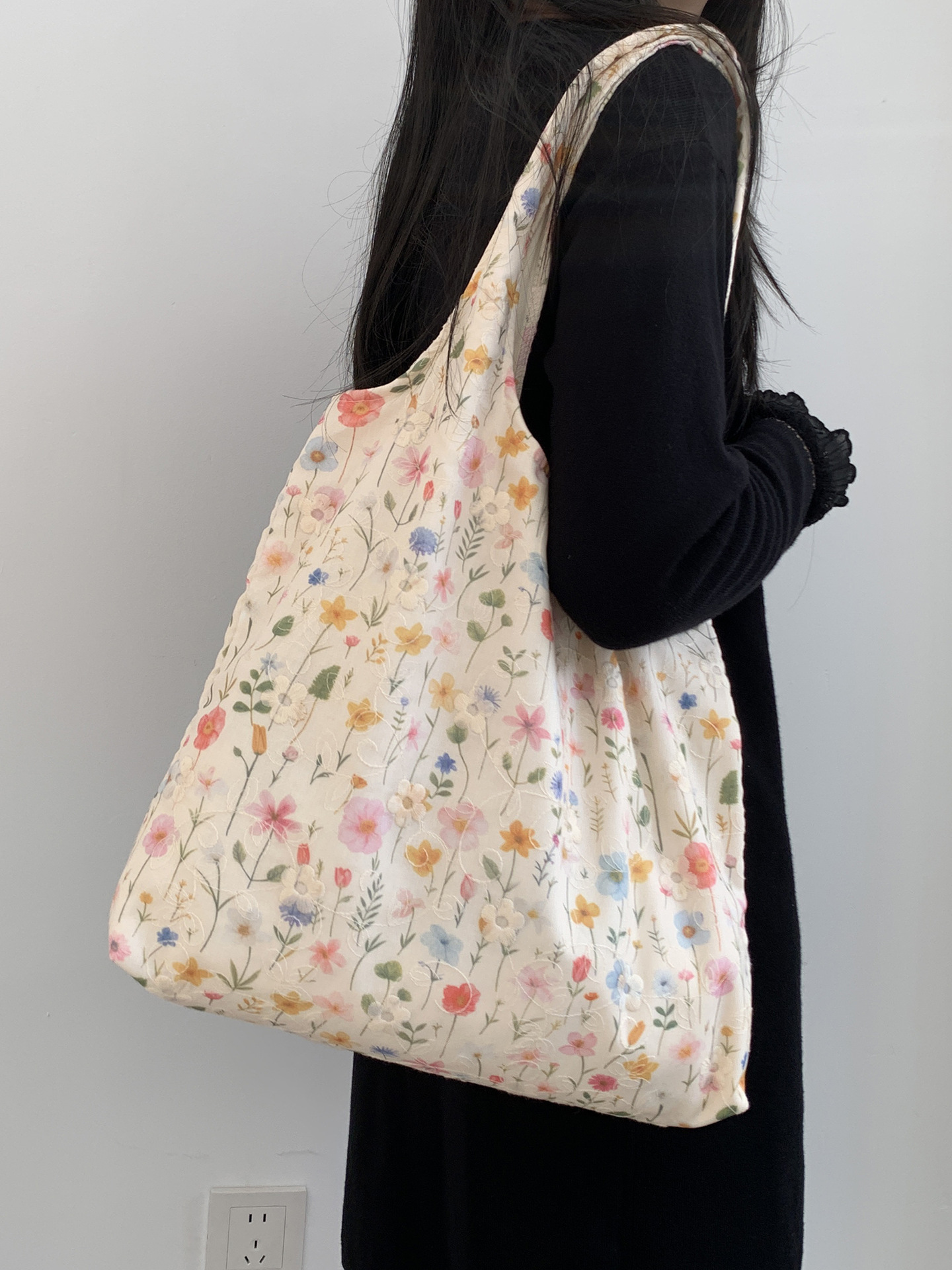 包包韩国小众刺绣碎花帆布包女单肩手提小清新百搭布袋慵懒风韩系
