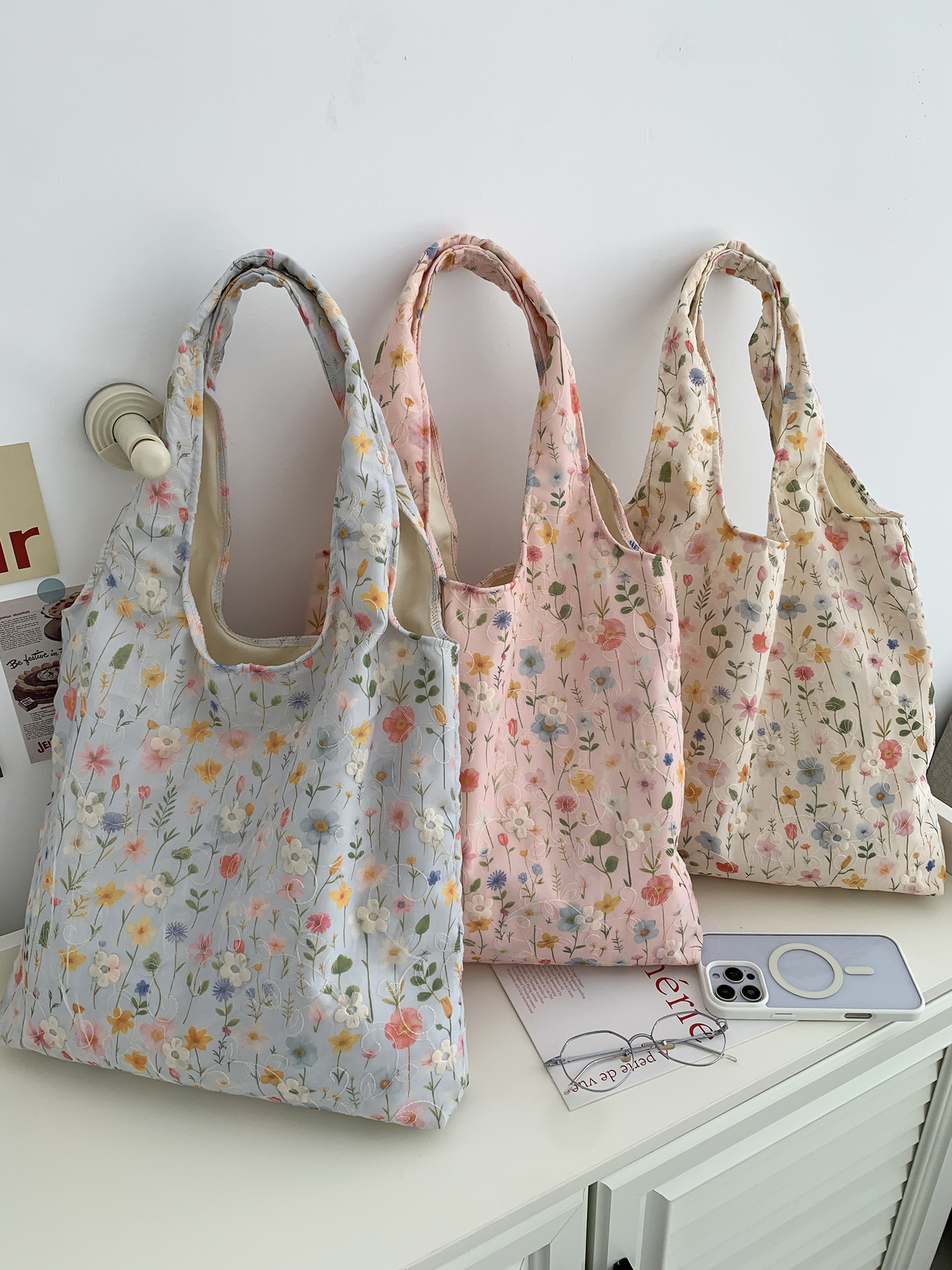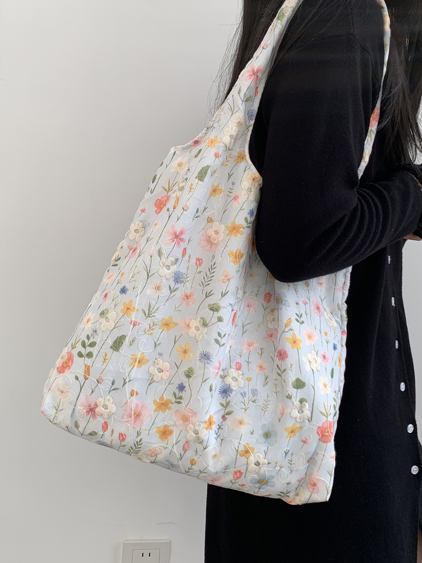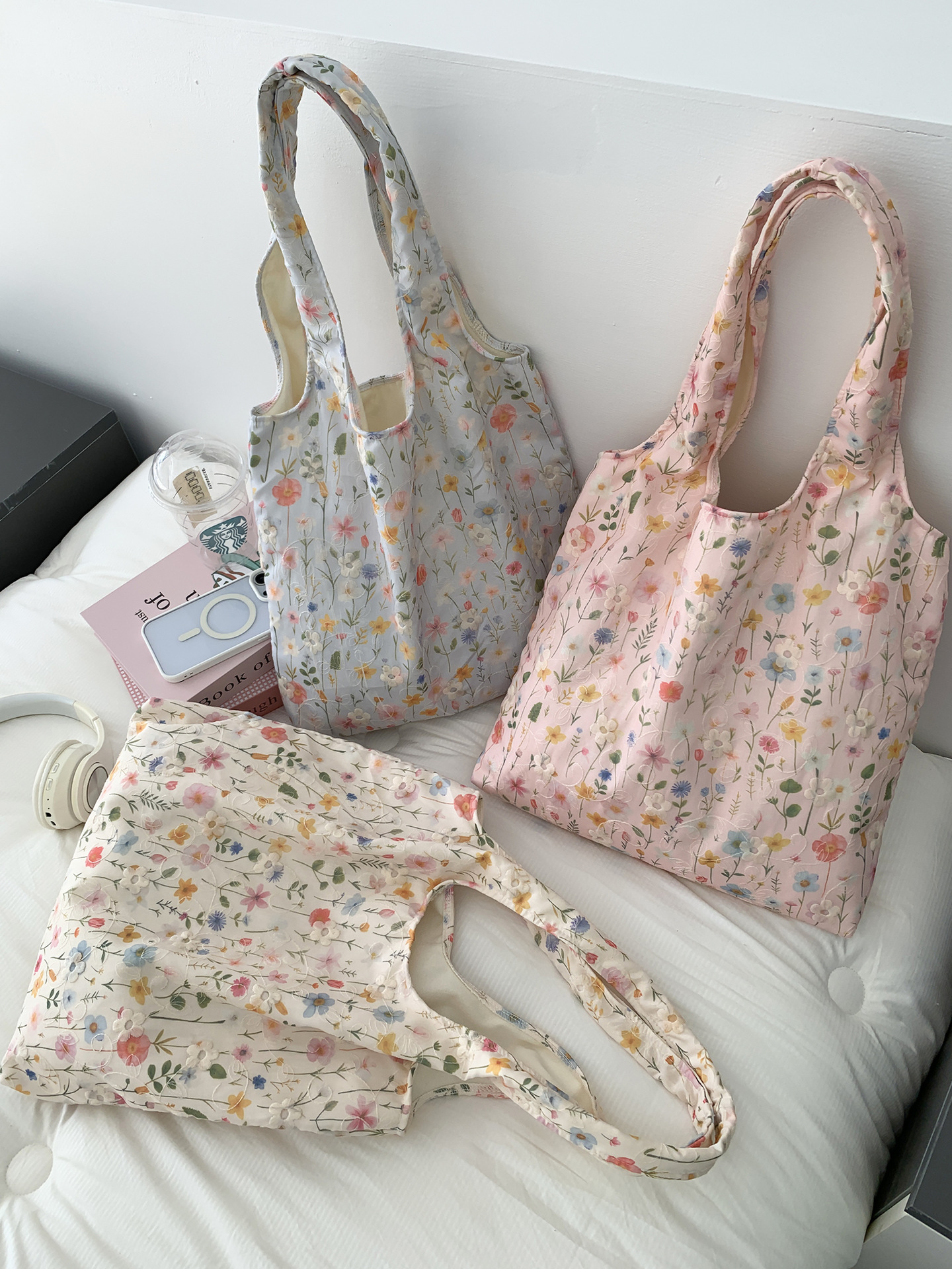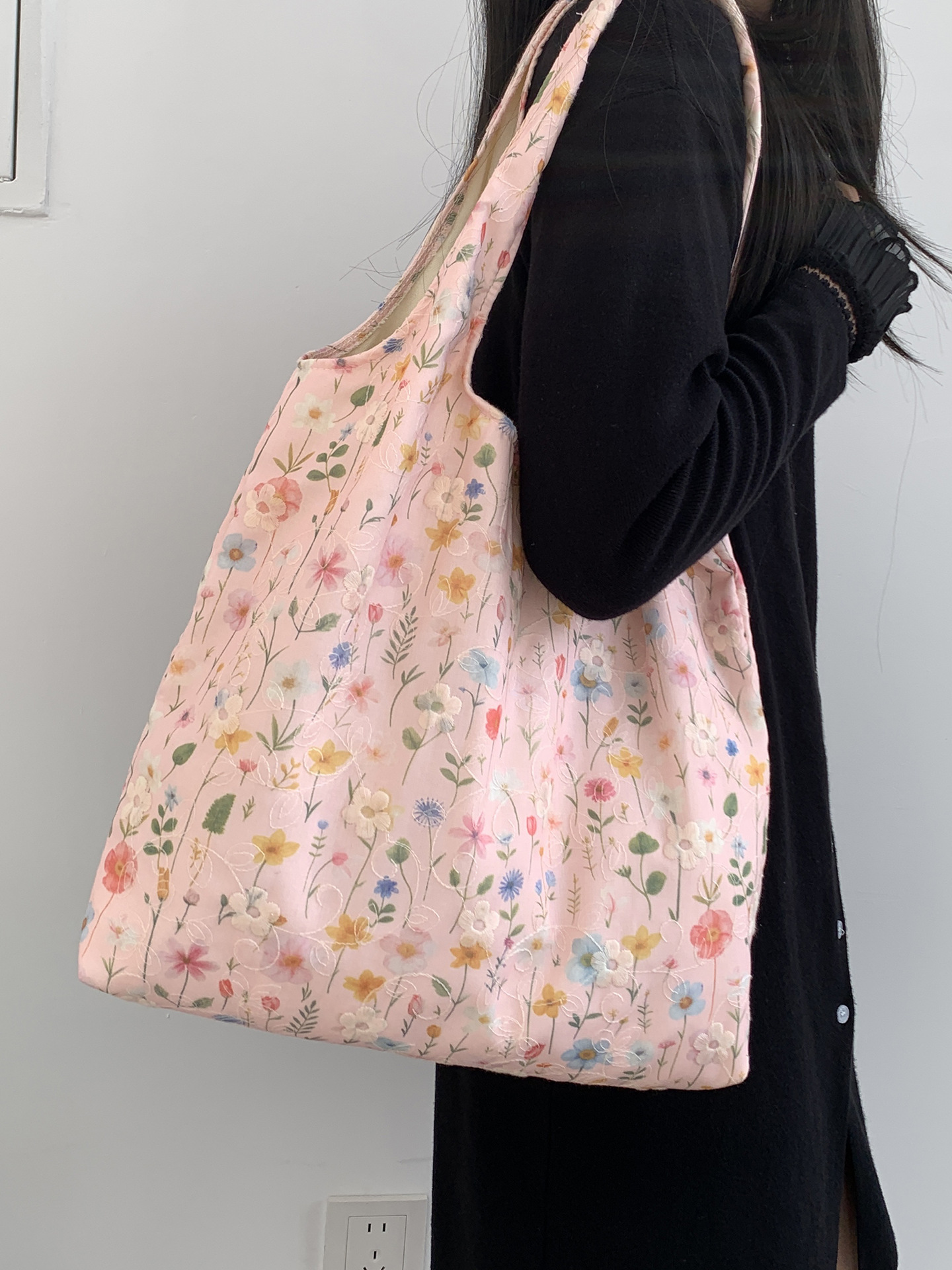 包包韩国小众刺绣碎花帆布包女单肩手提小清新百搭布袋慵懒风韩系
