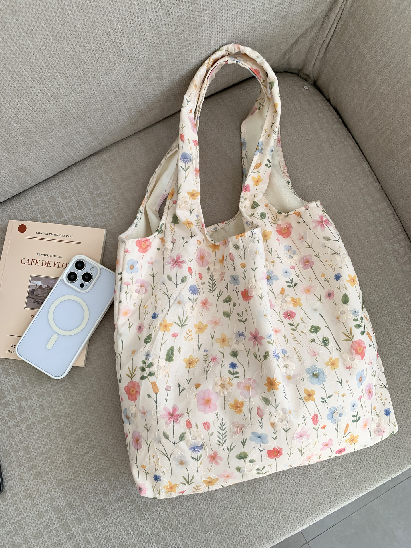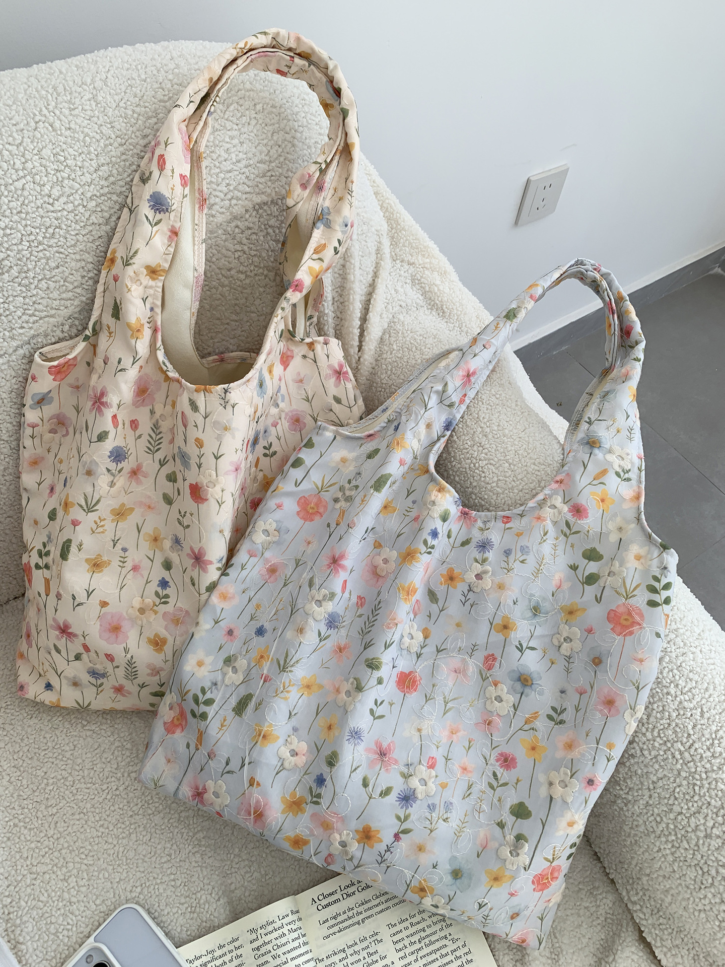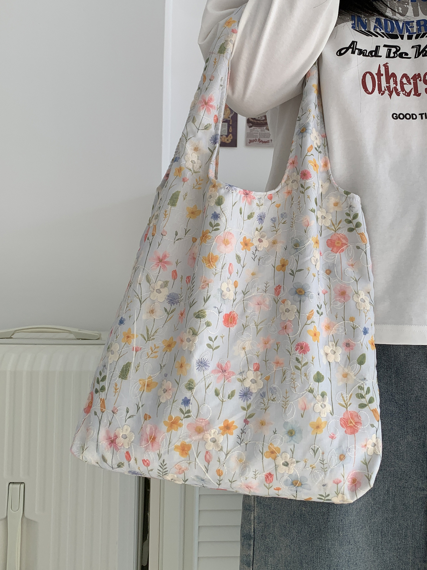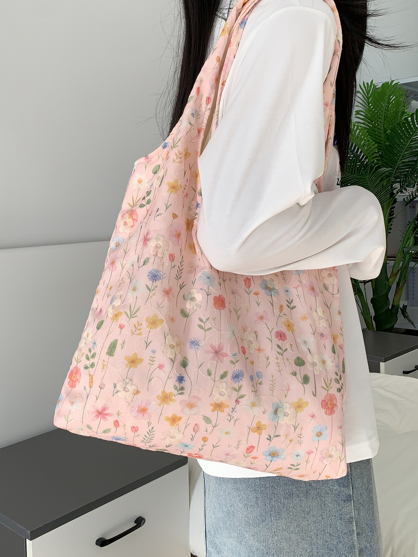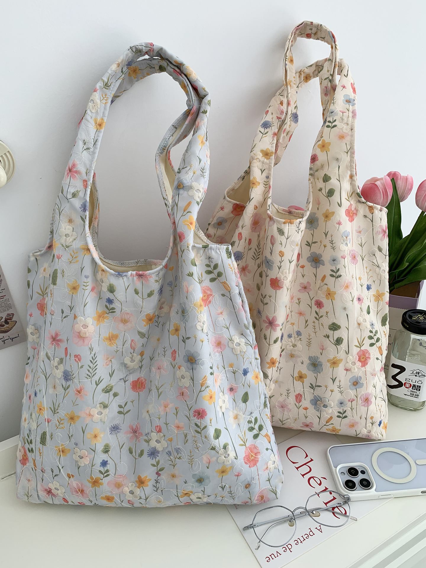 包包韩国小众刺绣碎花帆布包女单肩手提小清新百搭布袋慵懒风韩系
