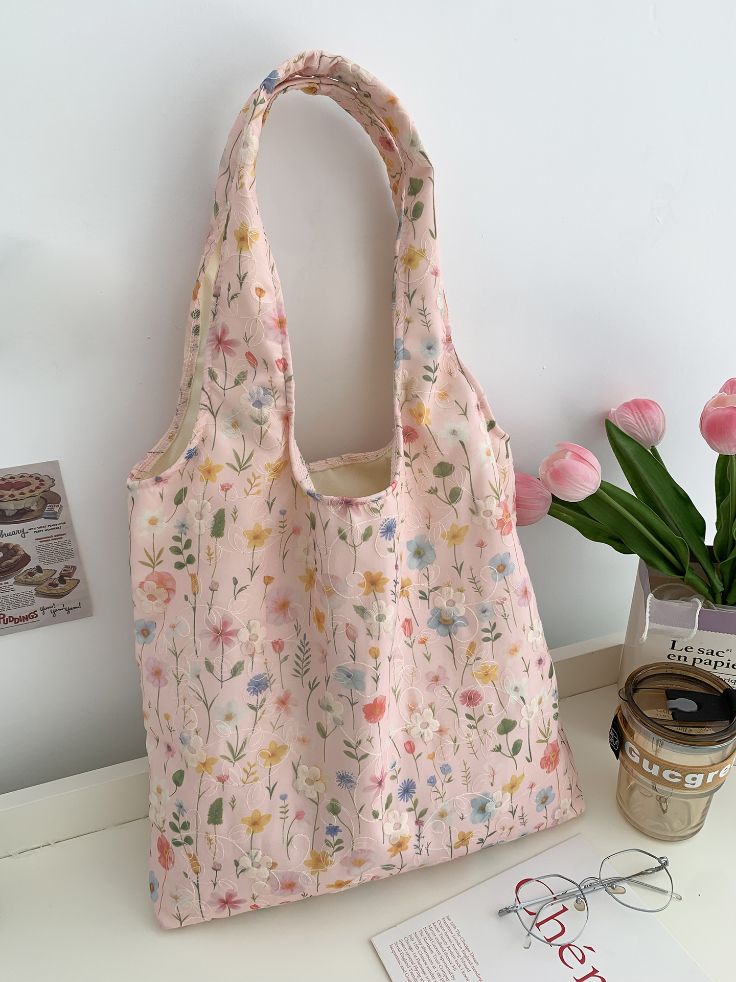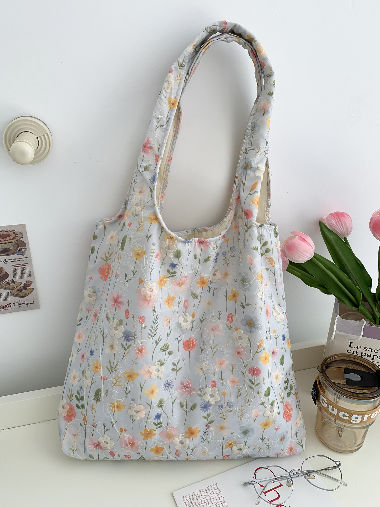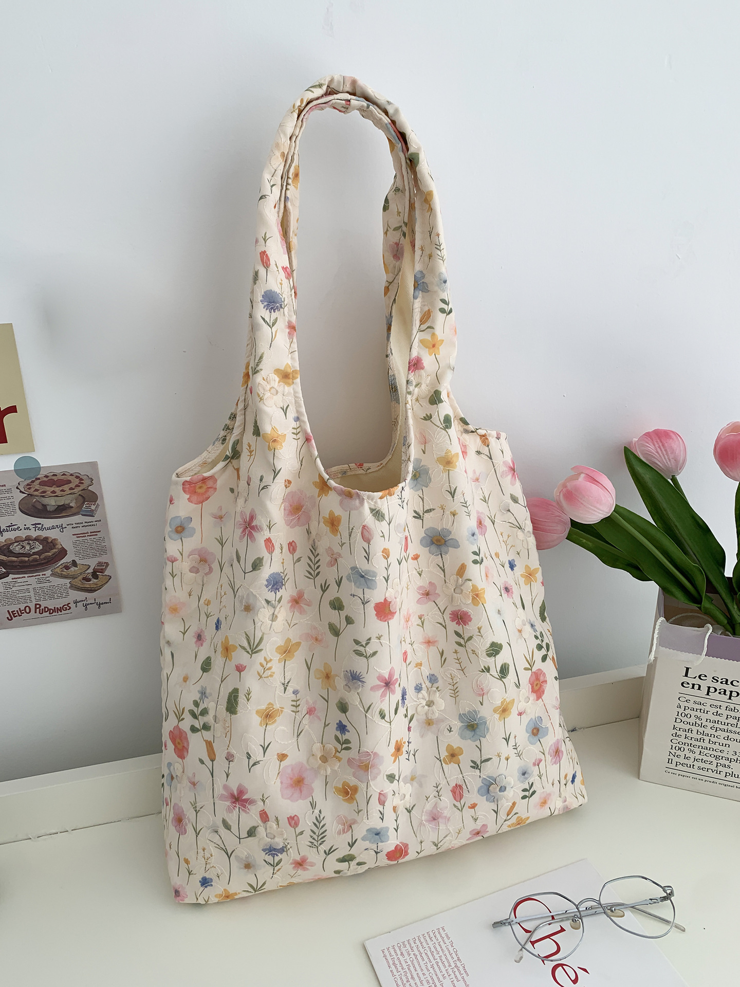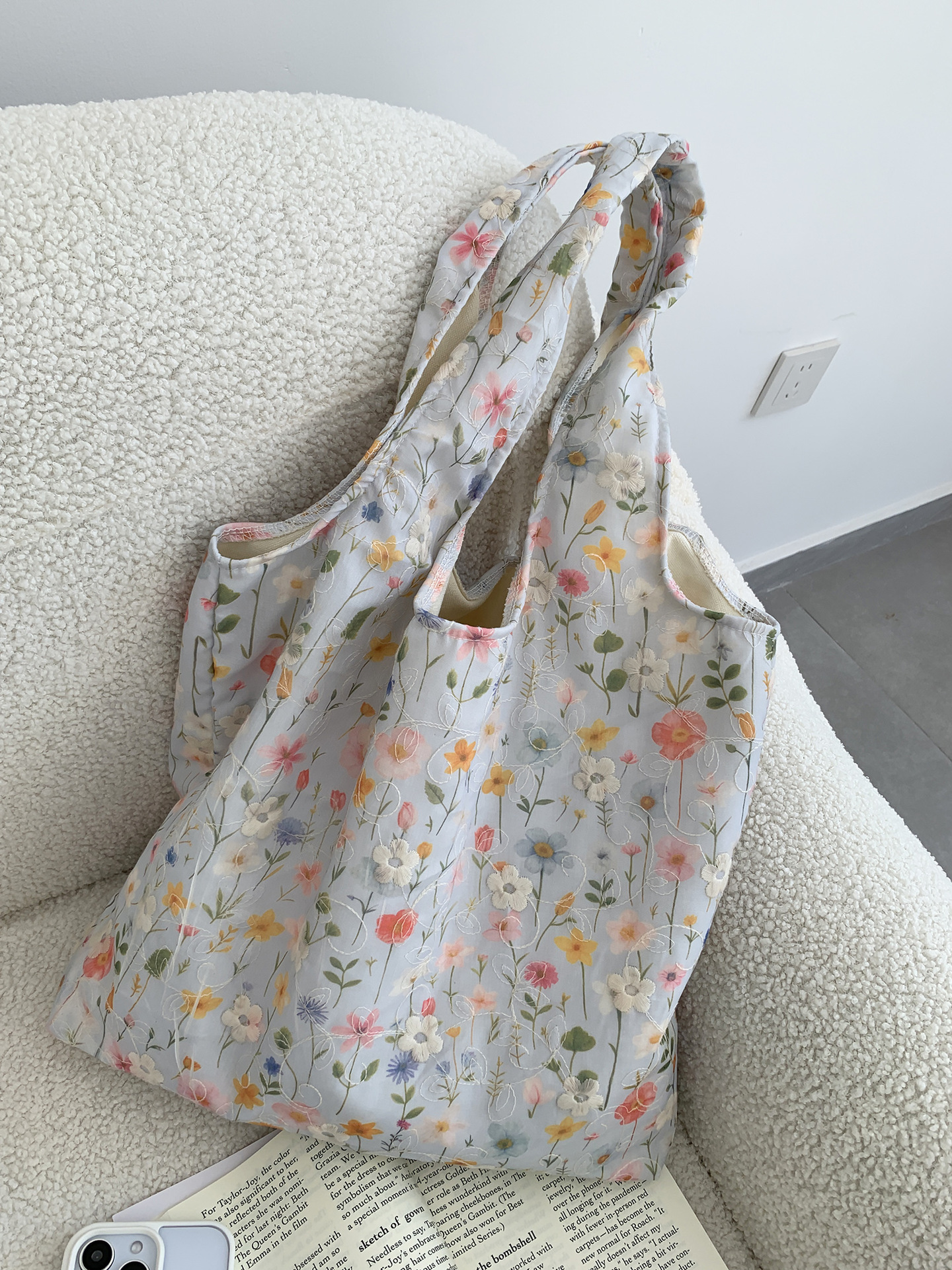 包包韩国小众刺绣碎花帆布包女单肩手提小清新百搭布袋慵懒风韩系