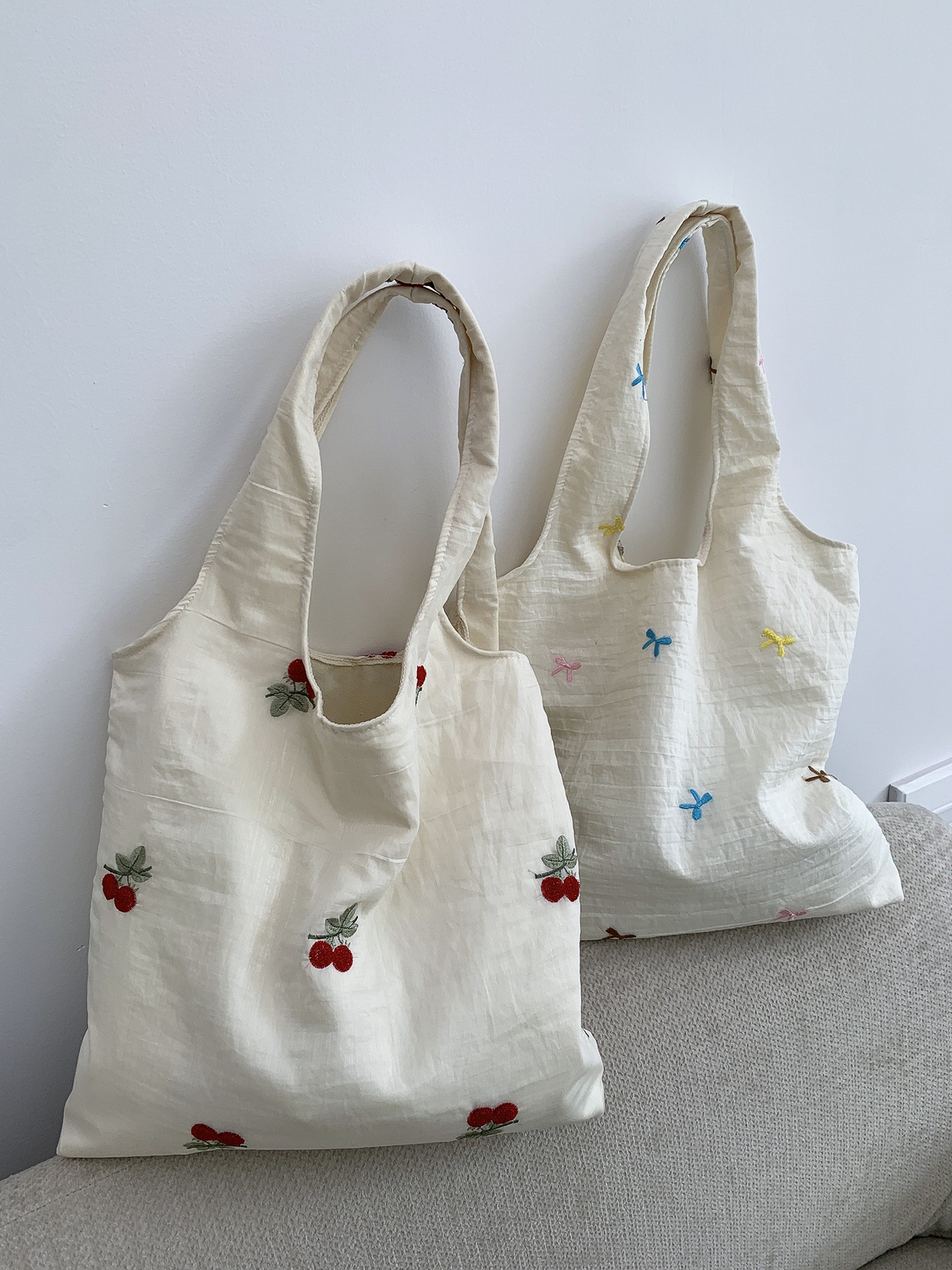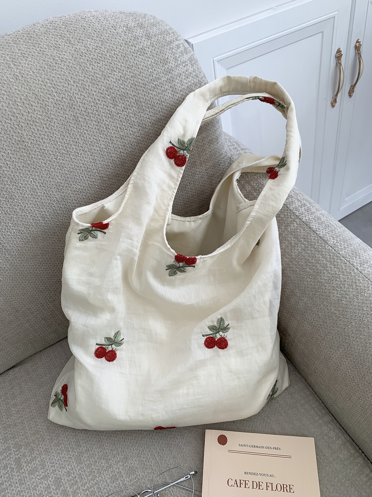 インチュール刺繍チェリー大容量学生ショルダーバッグ女性の脇の下バッグ通勤キャンバスバッグトートバッグ