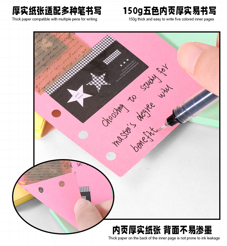 A7活页替芯纸彩色加厚6孔夹手帐本DIY替芯内页日记本计划本替换纸
