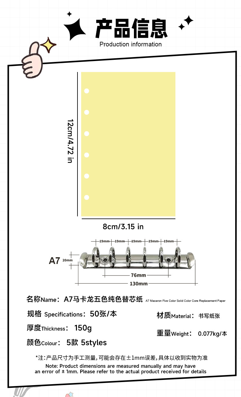 颜色 A7浅黄替芯纸50张,A7浅绿替芯纸50张,A7浅紫替芯纸50张,A7浅蓝替芯纸50张,A7浅粉替芯纸50张