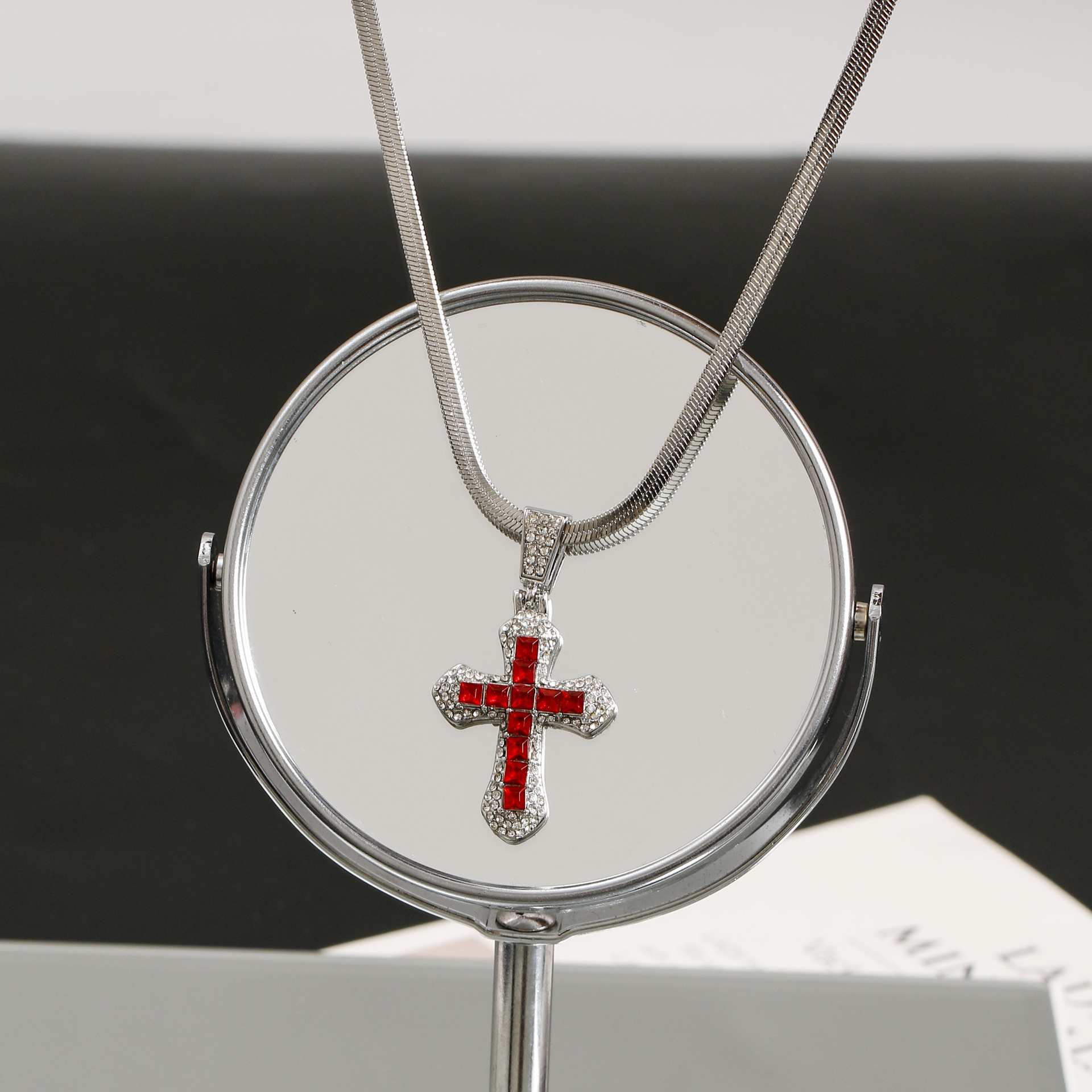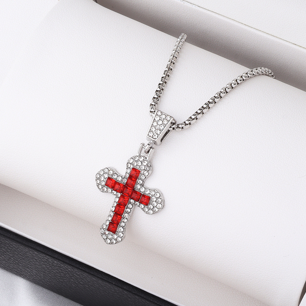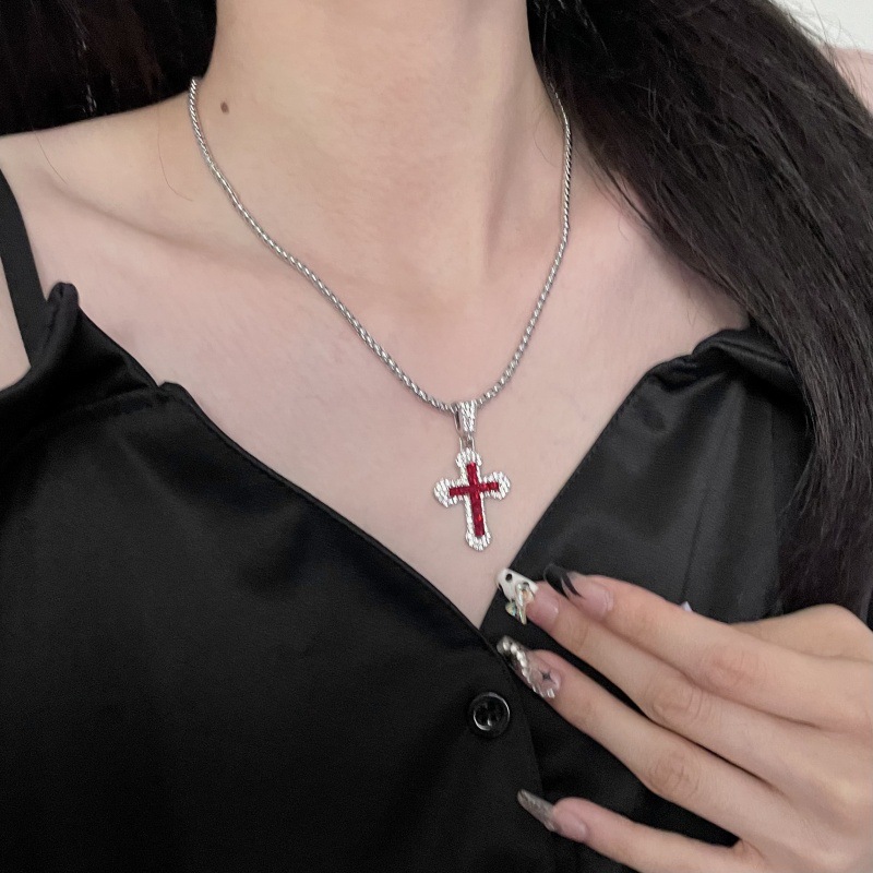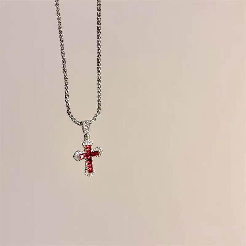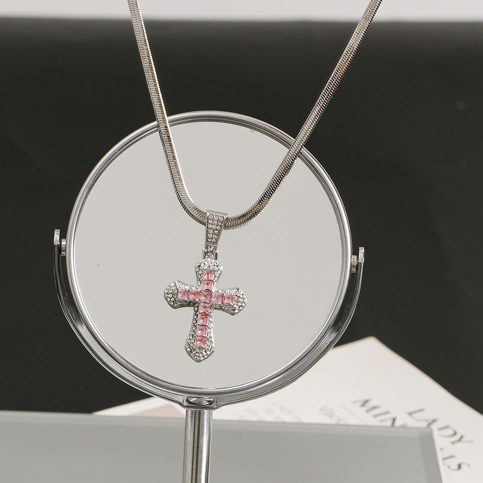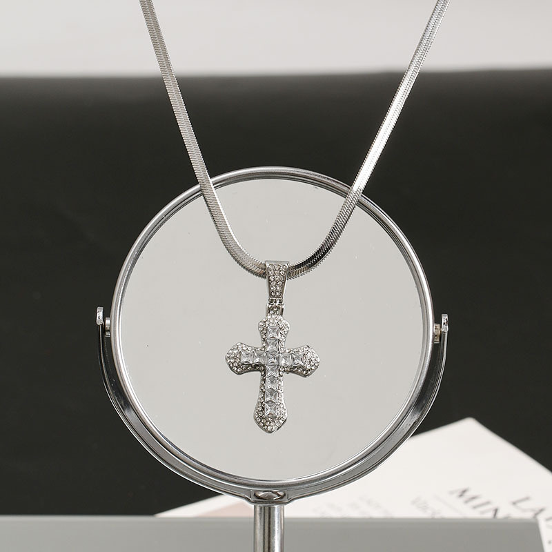 クロスボーダークロスネックレスヒップホップスタイルジルコンペンダントジュエリーチタン鋼多用途ネックレスパーソナライズされたフラッシュジュエリー卸売