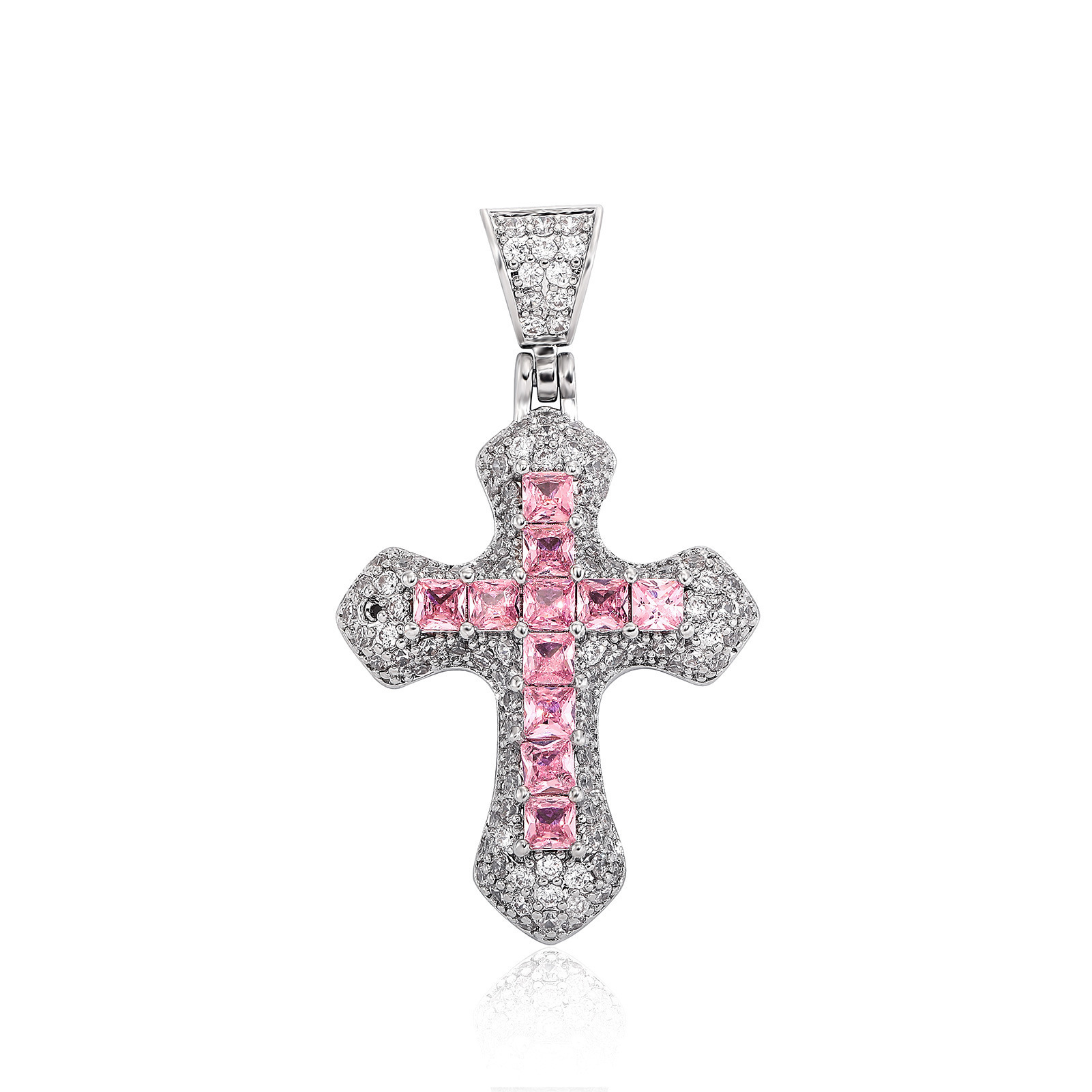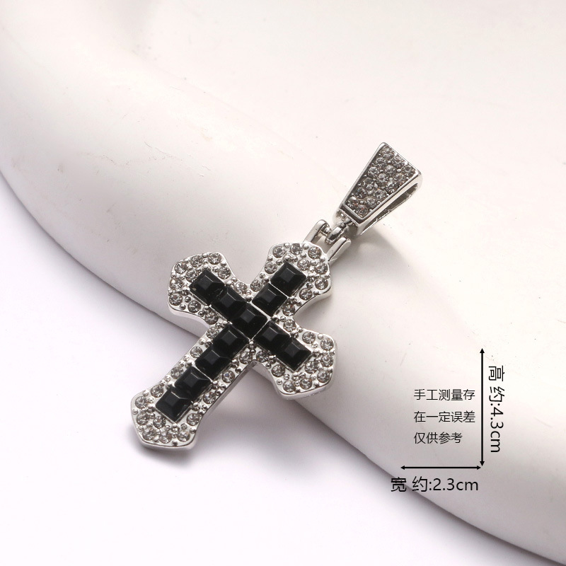 百搭多色锆石吊坠跨境欧美满钻十字架项链嘻哈潮流饰品十字架项链