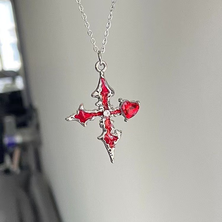 新しい「ダークナイトセイントマーク」ダークスタイルパープルクロスネックレスニッチデザイン甘くてクールなスタイルの鎖骨チェーン