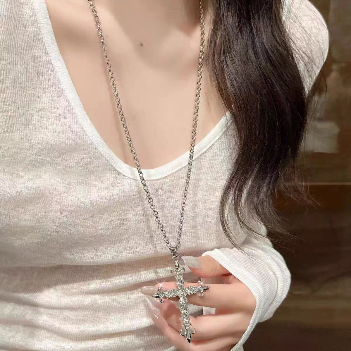 朋克暗黑十字架长款辣妹项链女2026新款甜酷Y2朋克颈链毛衣链配饰