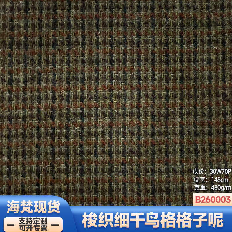 现货|480克梭织细千鸟格格子呢服装大衣外套鞋帽包裤裙呢绒面料