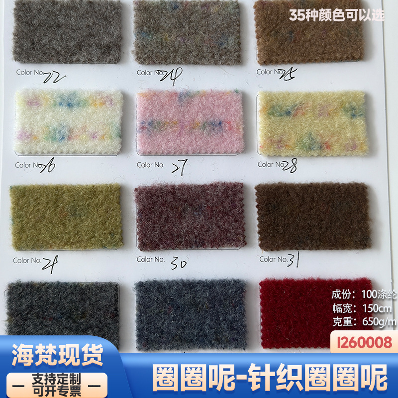 现货|650克雨花绒针织小圈圈粗纺服装毛呢大衣外套鞋帽箱包裤裙呢
